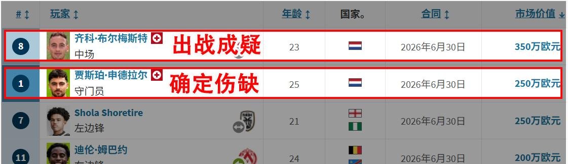 更离谱的是,他们现在简直是伤病连连。本来实力就不咋地,现在更是雪上加霜。核心中场布尔梅斯特脚踝有问题,主力中卫麦克纳尔蒂上一场吃红牌停赛,主力门将申德拉尔也伤了。这阵容,简直像是被诅咒了一样!