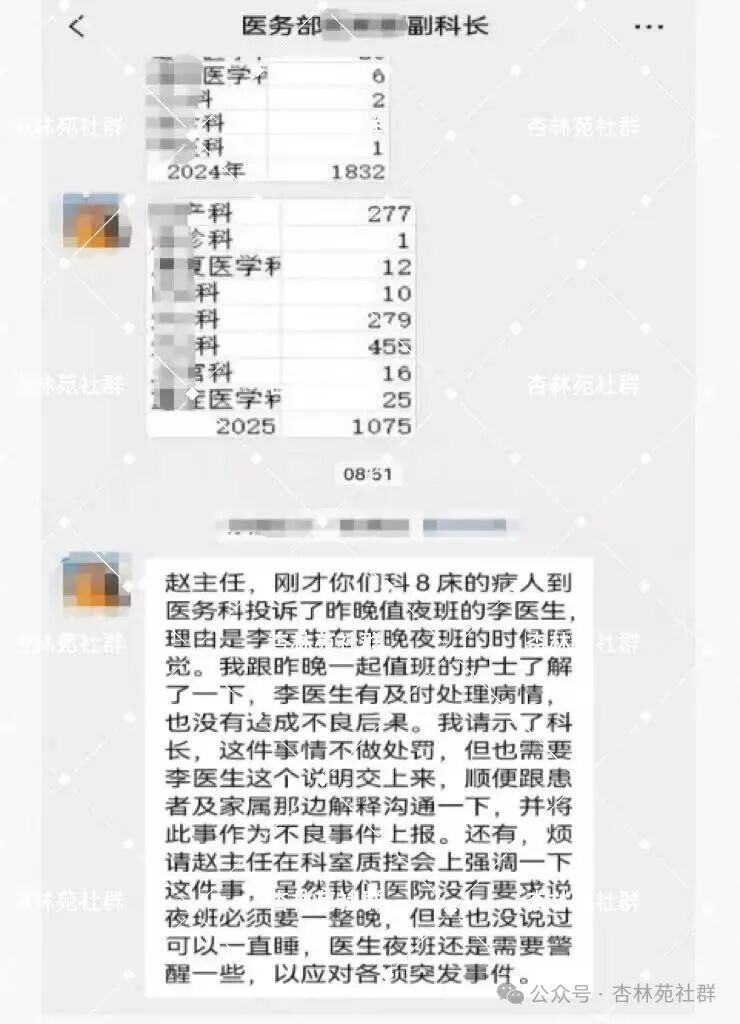 此外,医务科还强调:虽然医院没有要求说值夜班必须要一整晚,但是也没说过可以一直睡觉,医生值夜班还是需要警醒一些,以应对各种突发事件。