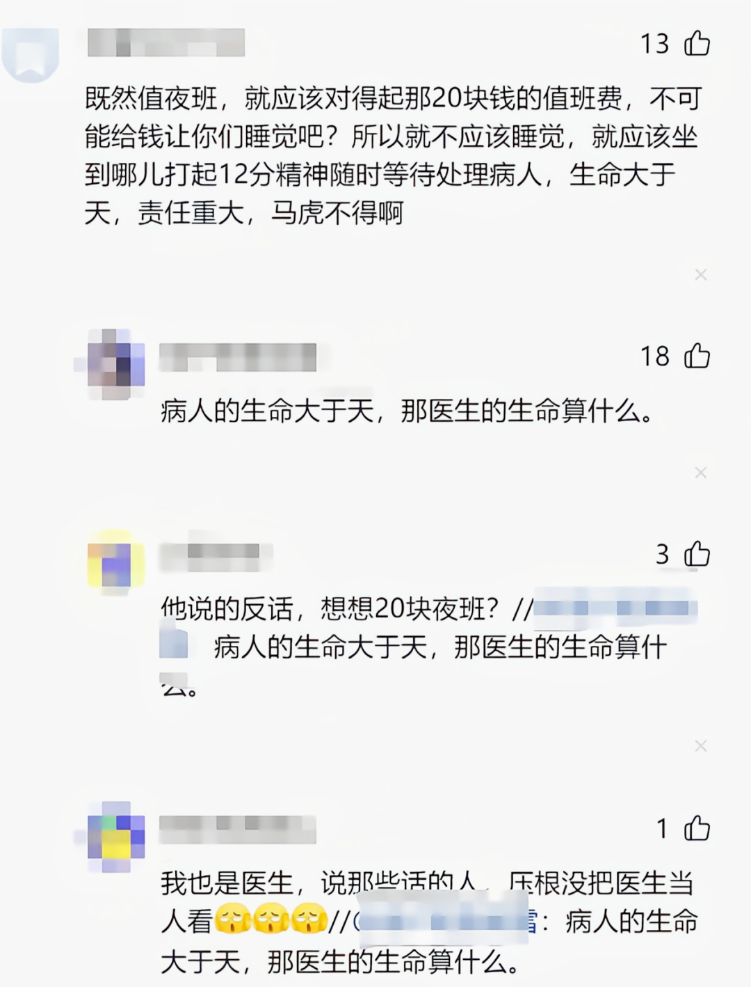 该医生还表示,医院没有明文规定说医生护士不能睡觉,重点是不能出事。消息一出,立刻在医务群体中引起热议。