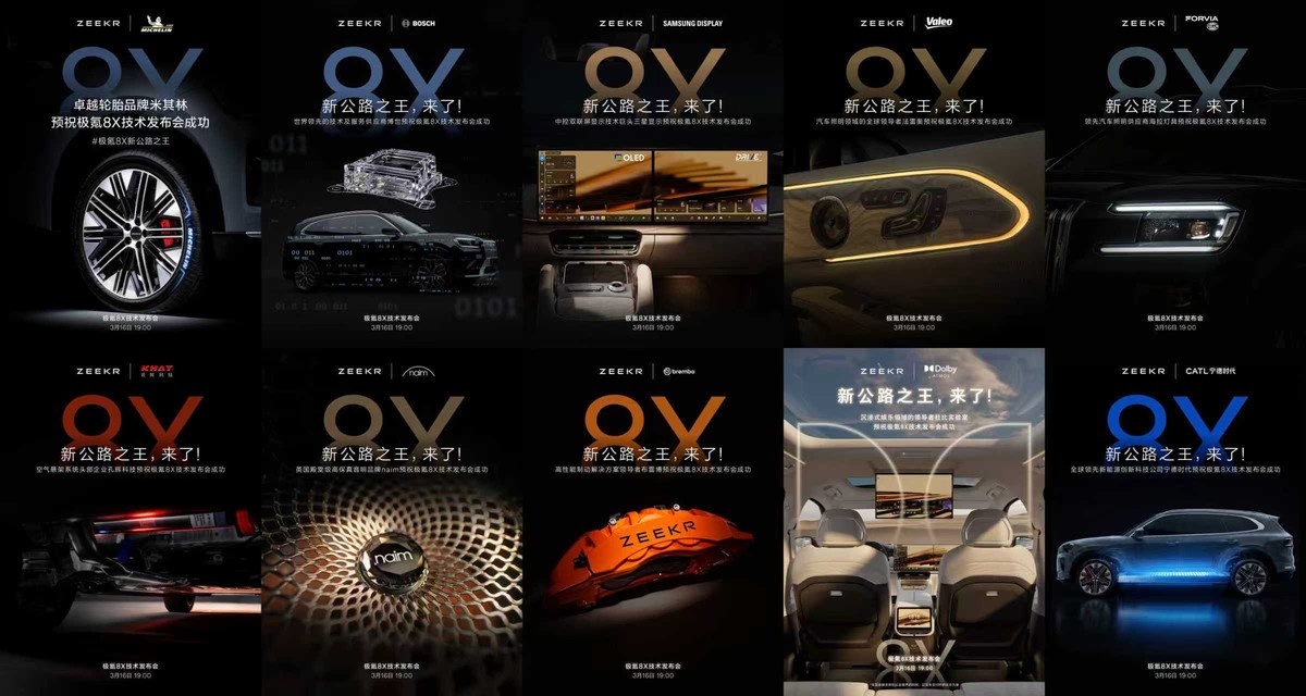 然而,真正将市场期待值推向新高的,是发布会前一场来自产业链核心环节的“集体发声”。包括多家全球顶级供应商在内的企业,通过官方社交媒体平台,以“新公路之王来了”为核心话题,预祝极氪8X技术发布会圆满成功。这一举动迅速引发网络关注,将这款新车推至行业讨论的中心。