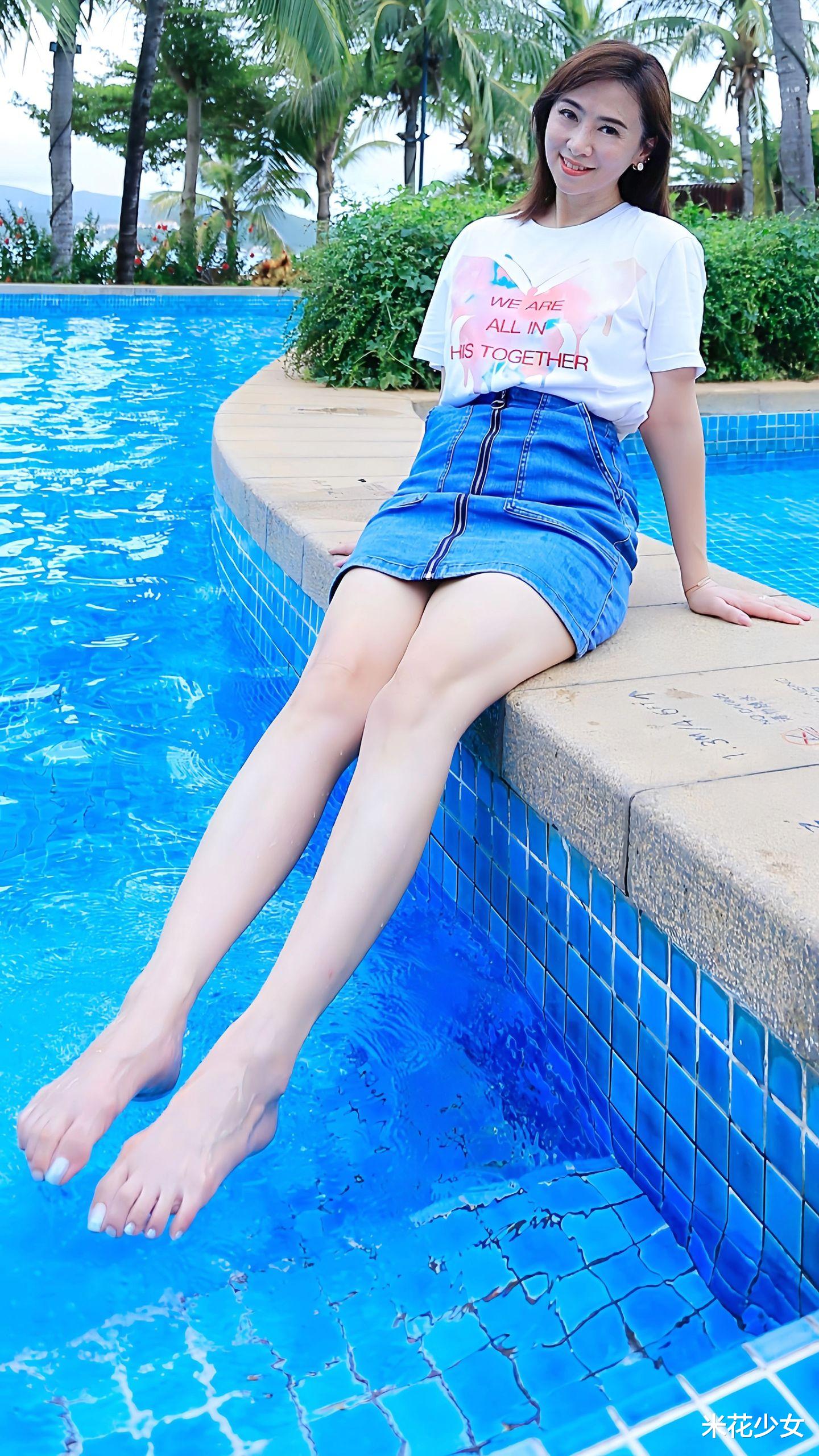 从她晒出的那些照片中,不难看出,她对于自己的腿型与脚型都很有自信。