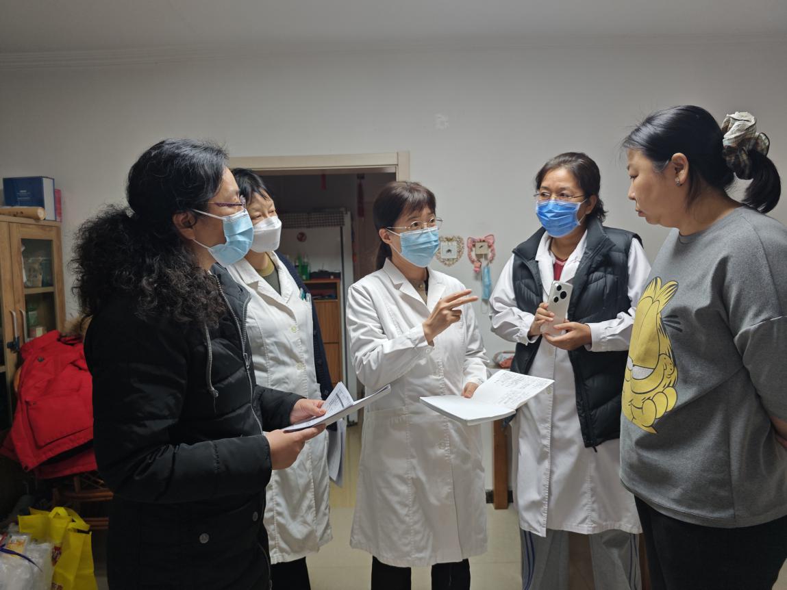1月初,家医团队赵文霞主任将家庭病床的利好政策与其家属沟通,得到了家属的认同。家庭病床建立前,家医团队开展首次巡诊。中心副主任冯娜、全科主任赵文霞、全科医师孙海英与主管护师郑红飞上门,为老人开展全面查体、评估病情、监测血糖、针灸治疗等,制定基础诊疗与护理方案,让老人在家中就享受到规范的中西医结合医疗服务。