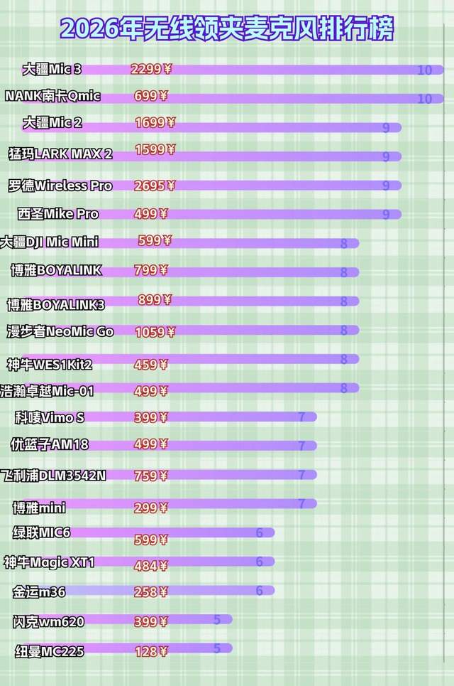 为了帮大家高效选购,我们总结了五大实用避坑技巧,从核心参数鉴别到售后保障筛选,手把手教你避开选购雷区。同时,结合不同创作场景与预算,精选了十款口碑与性能双在线的无线领夹麦,无论是适合新手的高性价比款,还是适配专业团队的旗舰机型,都能满足不同层级创作者的需求。让这份指南成为你的选购利器,轻松选到一款耐用、好用、适配性强的无线领夹麦,为每一段优质内容保驾护航。