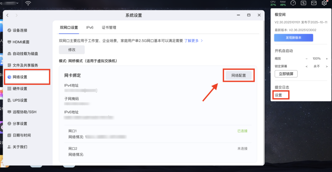 进阶技巧长期使用建议在 “系统设置 - 网络设置” 中配置固定 IP,NAS 与电脑需设为同一网段(如 NAS 设 192.168.1.2,电脑设 192.168.1.3),避免重复获取地址。