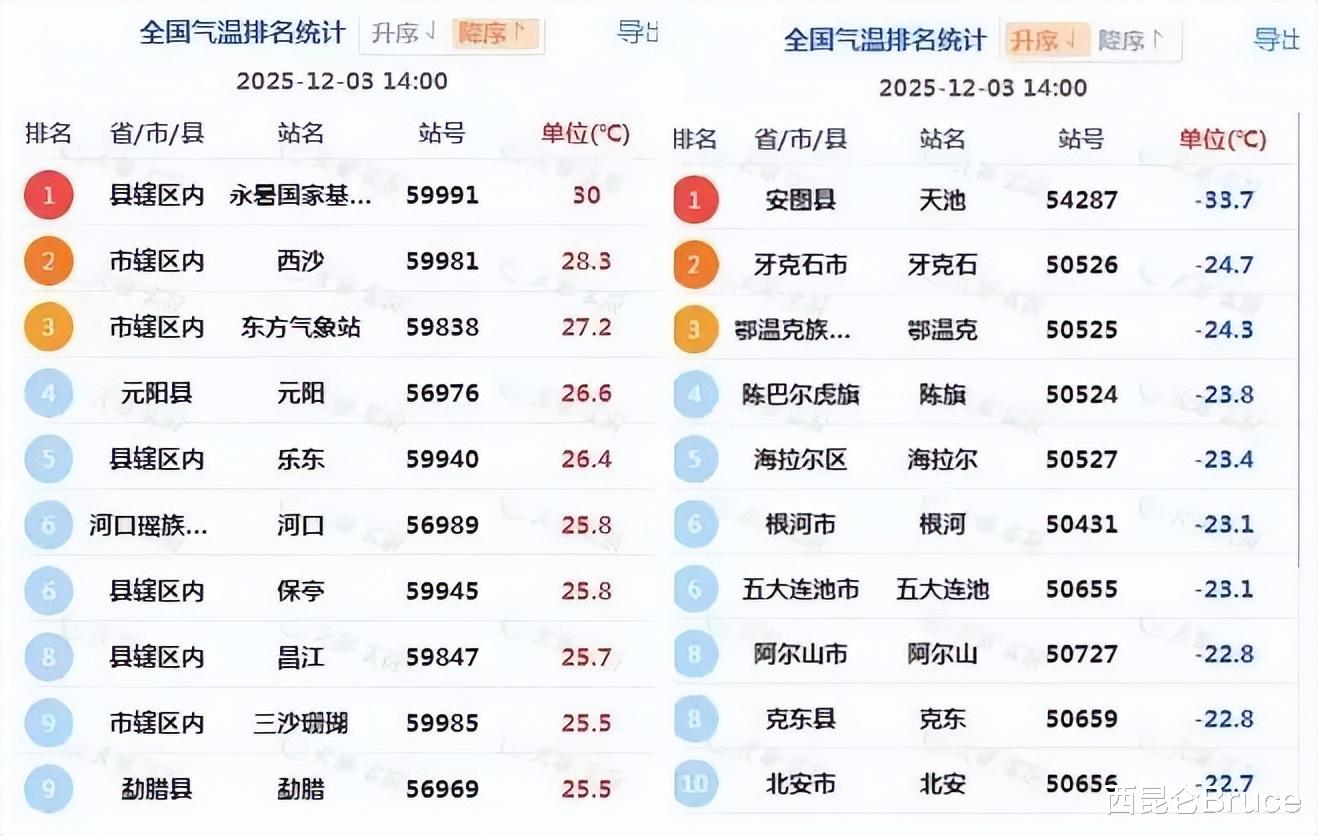 12月4号这一天,我国南北的温差超60℃:北方速冻,广东还在过“初夏”。