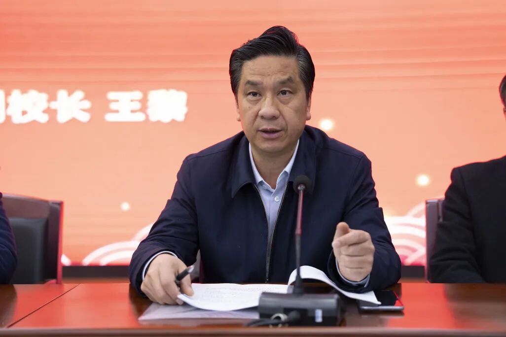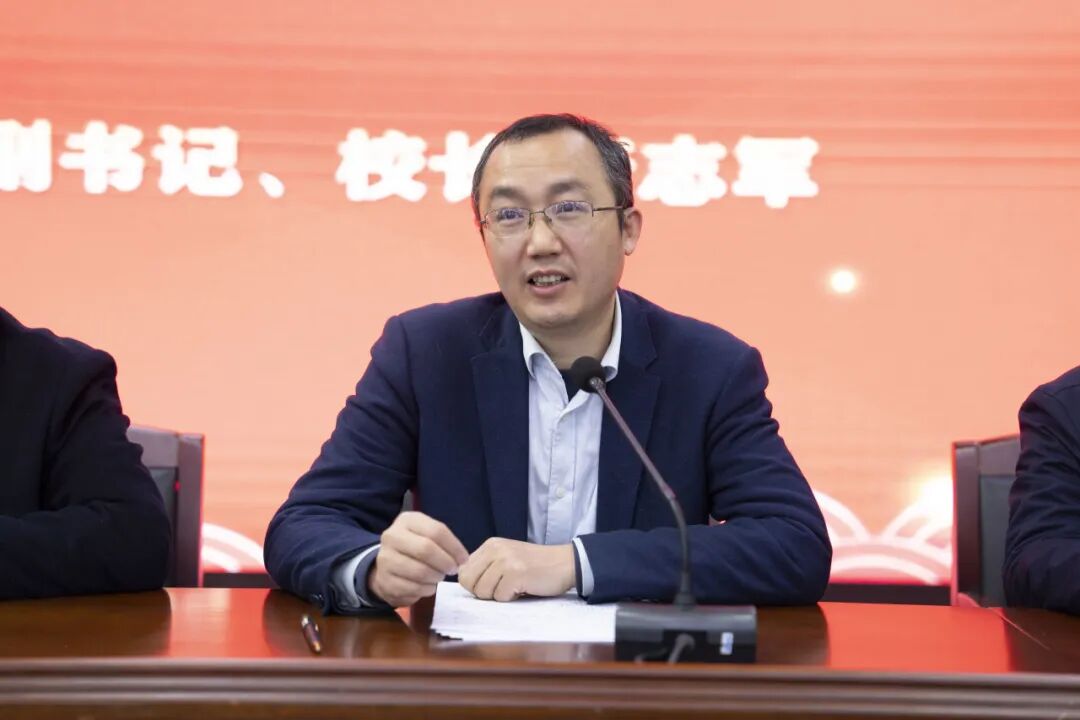 党委副书记、校长唐志军作题为《深耕提质乘势而上,骐骥千里更上一层》的开学工作报告,向全体教职工致以新春祝福,全面回顾了2026年学校取得的亮眼成绩,明确了新学期学校工作的指导思想,提出新学期要全力推进健康校园、质量校园、高效校园、品质校园、名师校园、文化校园、平安校园七大校园建设的总目标,勉励全体八中人要以 “策马扬鞭、勇攀新高” 的干劲,深耕提质、笃行实干,以教育教学新成效、办学发展新突破迎接学校百廿华诞。