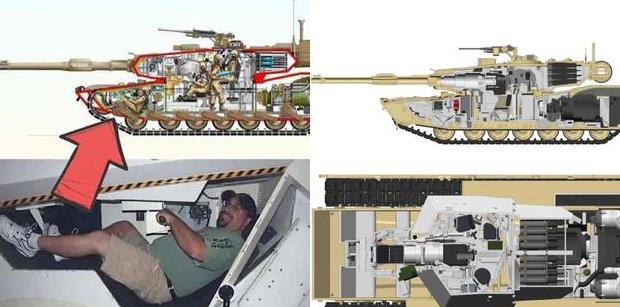 可是,考虑到M1坦克所特有、近乎锥形的前车体造型,Abrams X这部位的空间大小和高度也必然受限,想不让这3名成员躺下都难!假如这个推断成立,Abrams X也将成为全球首款“躺在内作战或牺牲”的第4.99代主战坦克!