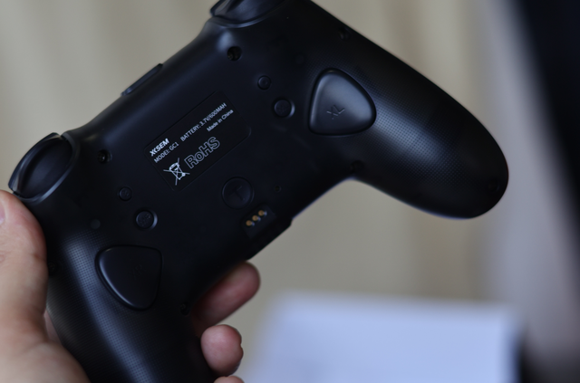 最让我惊喜的是半透明外壳设计,正面亮面透明的按键区和雾面磨砂的握把形成质感对比,能隐约看到内部的震动马达和金属骨架,科技感十足。