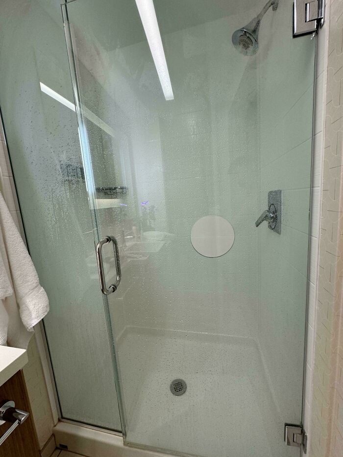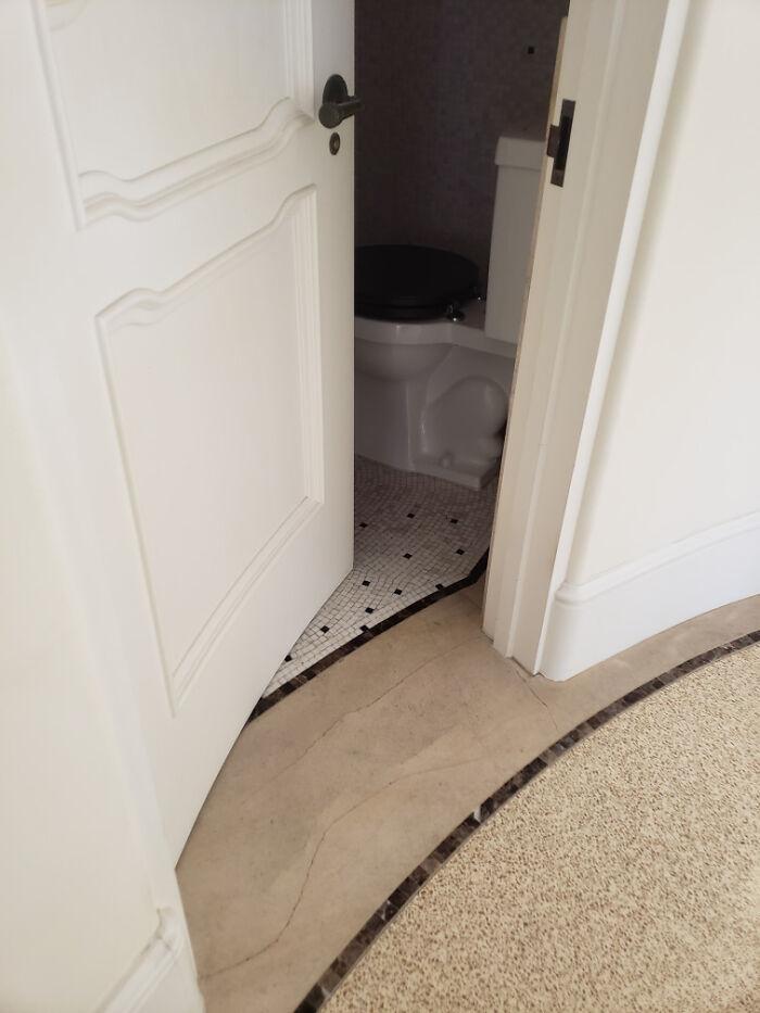 28. 在酒店的淋浴间,门上意外地开了一个洞,让人不禁猜想它的由来。