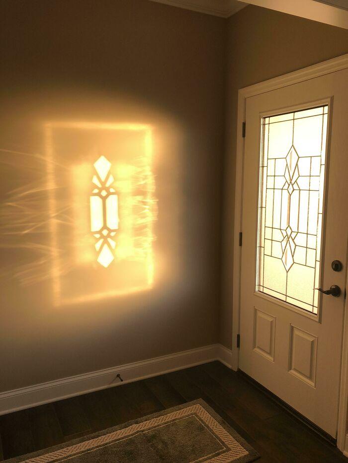 14. 清晨,我家前门的倒影在地面上绘出了一幅美丽的图案。