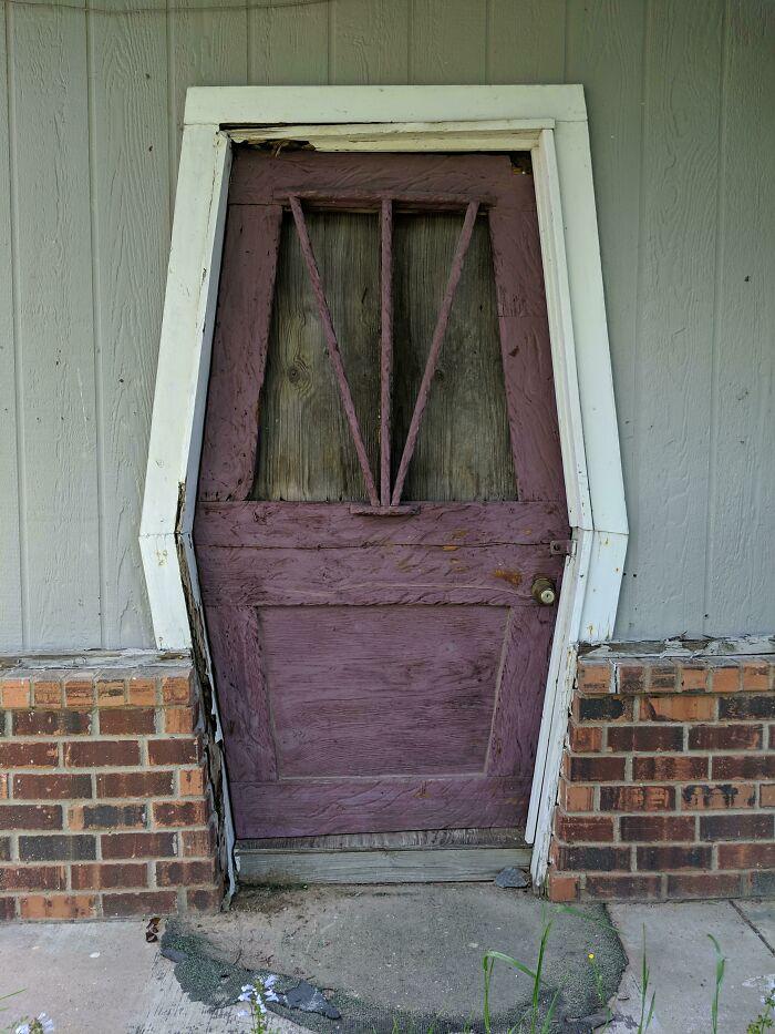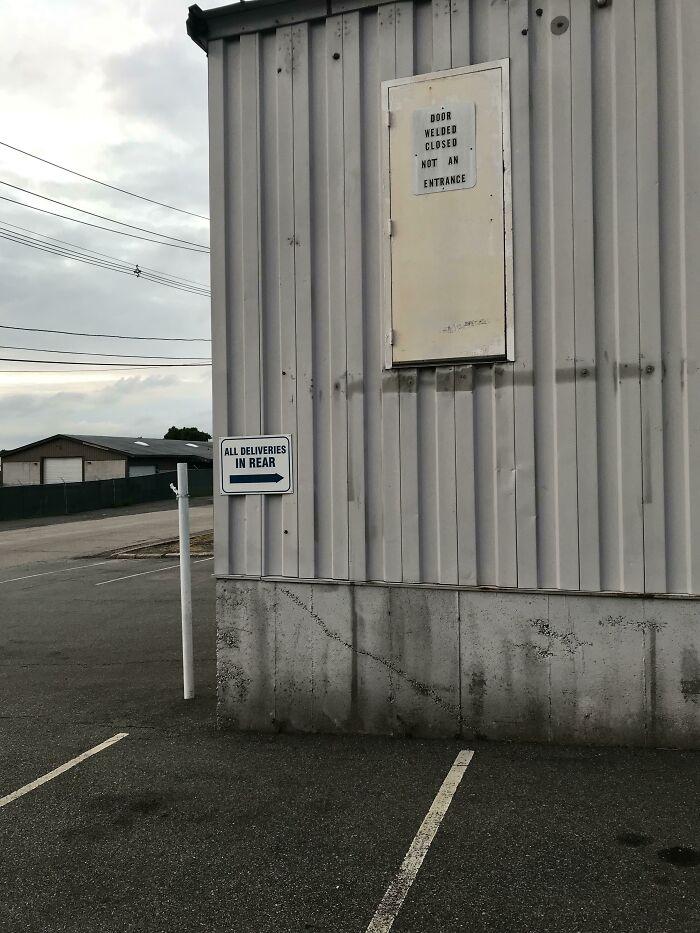 24. 这扇门被焊死,高高地悬在离地面八英尺的地方,显然不是一个入口。