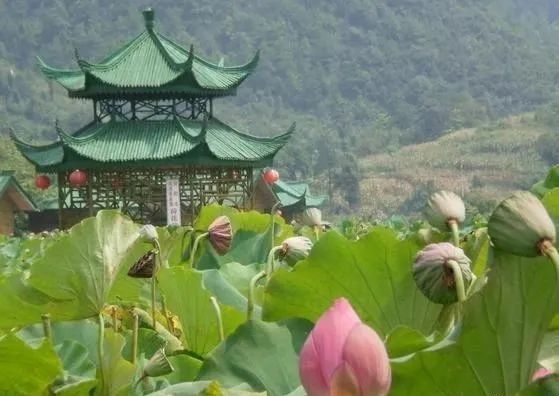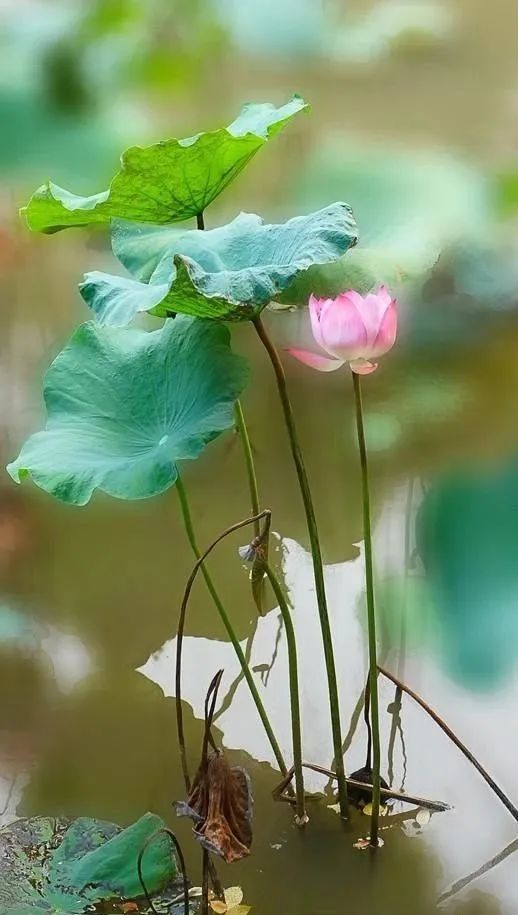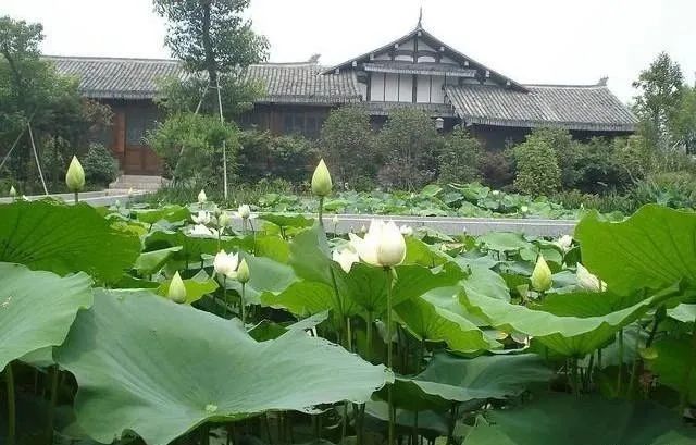 自己信马由缰不问目的地走着,不知不觉走到一处开满莲花的池塘边,正沉浸在这阵阵莲香里。突然,一叶小舟从藕花深处缓缓地出现在眼睛里,小舟上有一位一身青衣的年轻小尼姑。