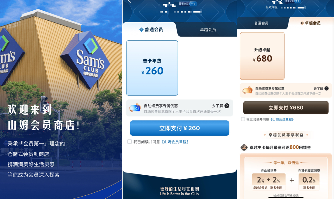 进入山姆是有门槛的,每年260元的普通会员费是最低标准,另一档卓越会员更是高达680元/年。消费者愿意每年支付会员费,是对山姆选品能力和品质保证的信任。
