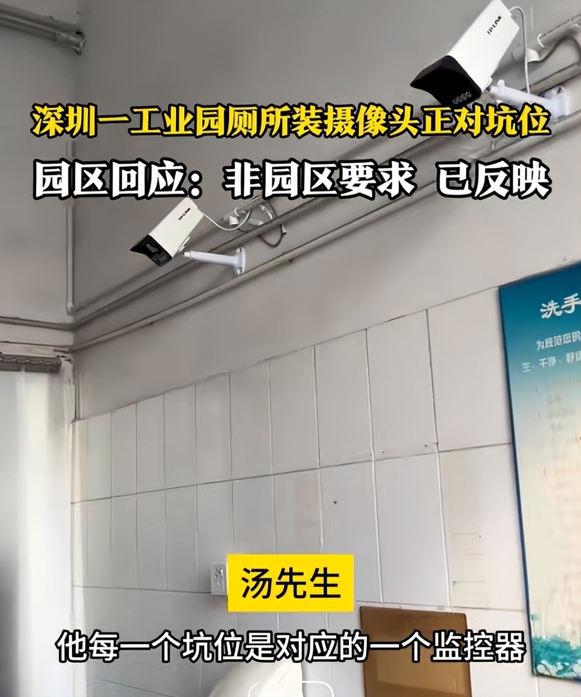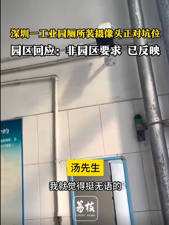 汤先生觉得这样的行为很可能会让上厕所的人隐私泄露,于是汤先生联系了园区的物业管理人员,从管理人员口中得知,这是该楼层的公司(工厂)所谓,园区没有要求要在厕所安装摄像头。对于汤先生反映的问题,园区工作人员会向相关工厂做出反映的。