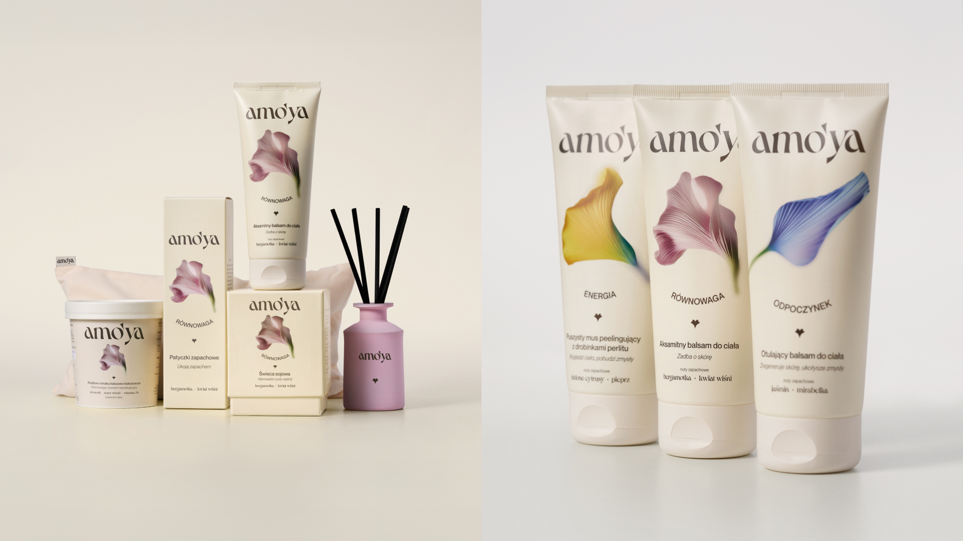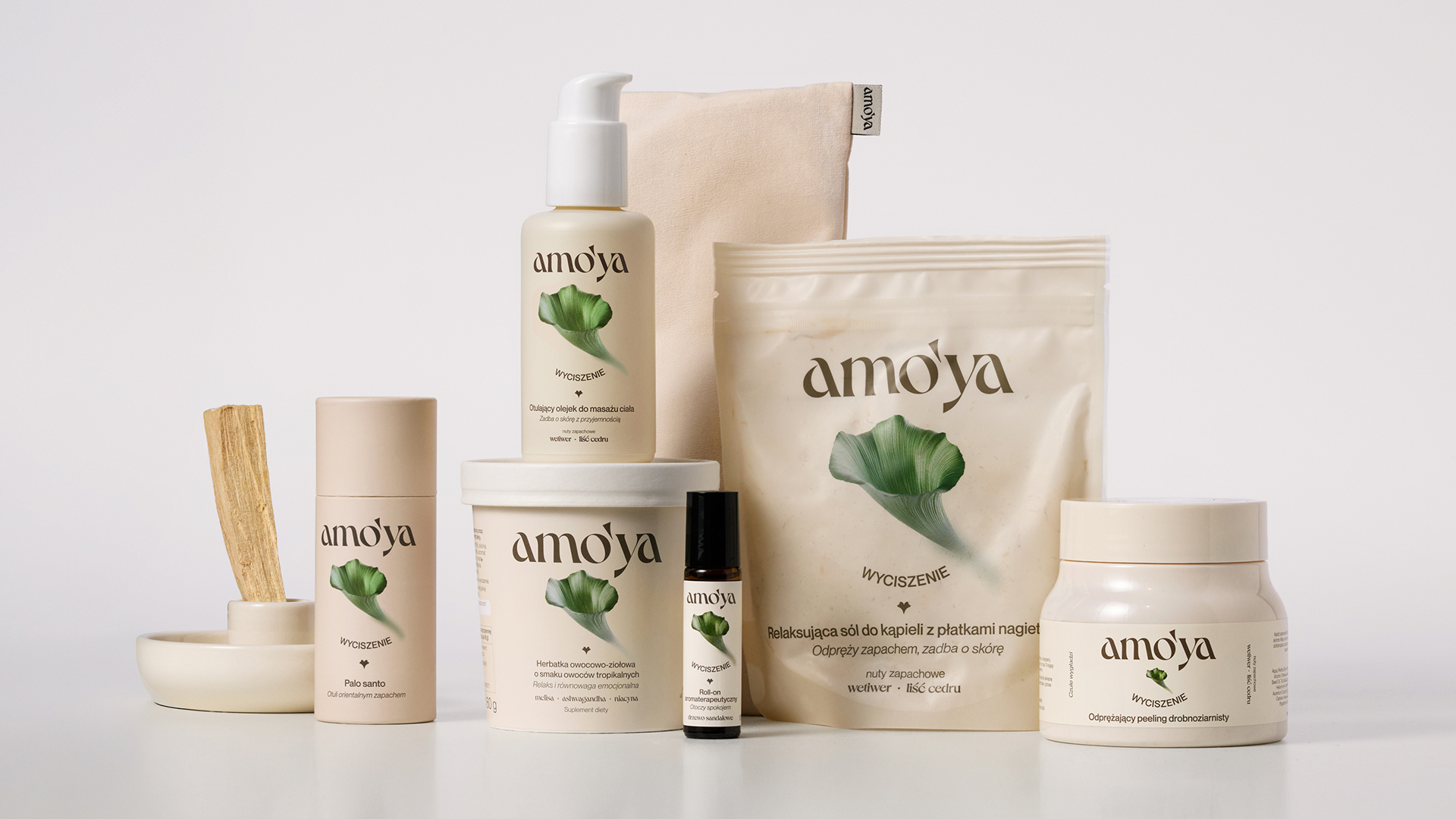 amoya的包装仿佛将大自然与精致生活完美融合。其包装整体采用柔和的米白色调,给人一种温暖、纯净且自然的视觉感受,就像春日里的一缕阳光,轻柔又舒适。