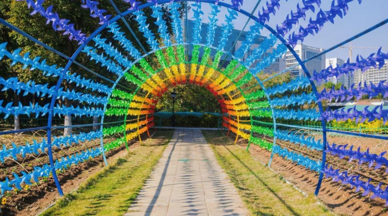 福州花海公园最近刚升级的彩虹风车长廊火出圈了——182米长、上万只风车按照赤橙黄绿青蓝紫的顺序排列,风一吹,治愈力拉满!
