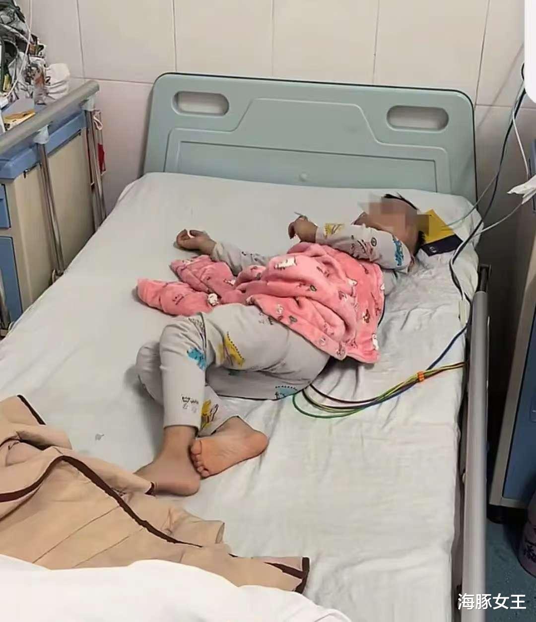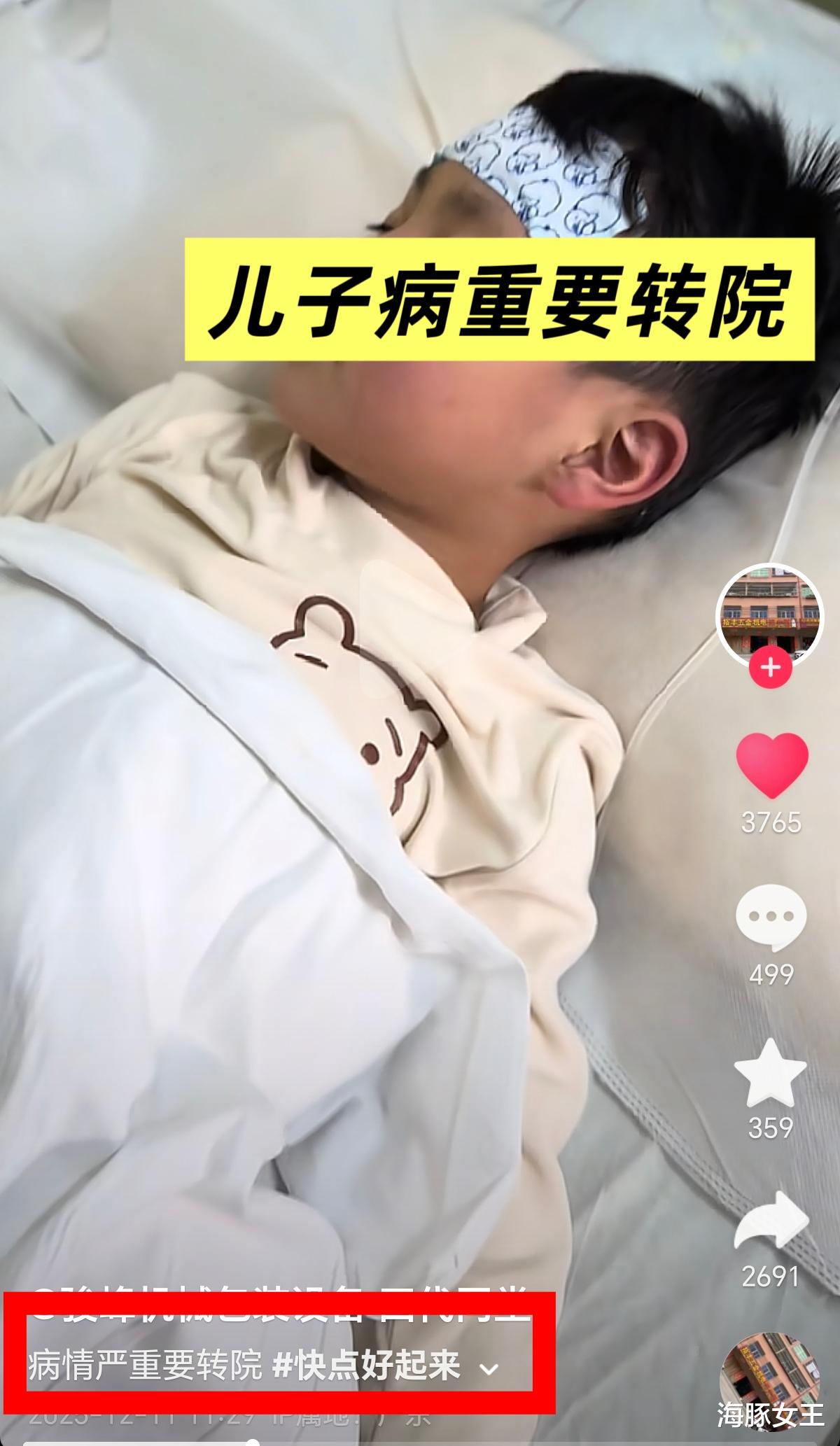 吴大哥一个儿子满脸通红,头上贴着退烧贴,因为病情加重,吴大哥说儿子要转院治疗。