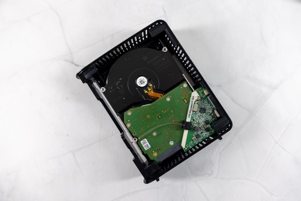 在背面可以看到加装了一块小主板,把硬盘拆出来再把这块小主板拆到就可以得到一个台式机硬盘了。