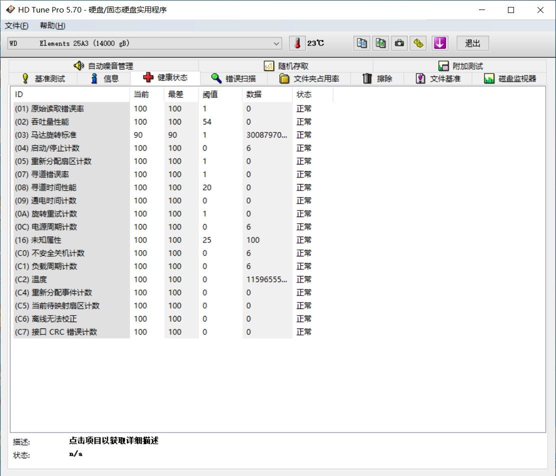 然后看了下HD Tune Pro的健康状态,一切正常。