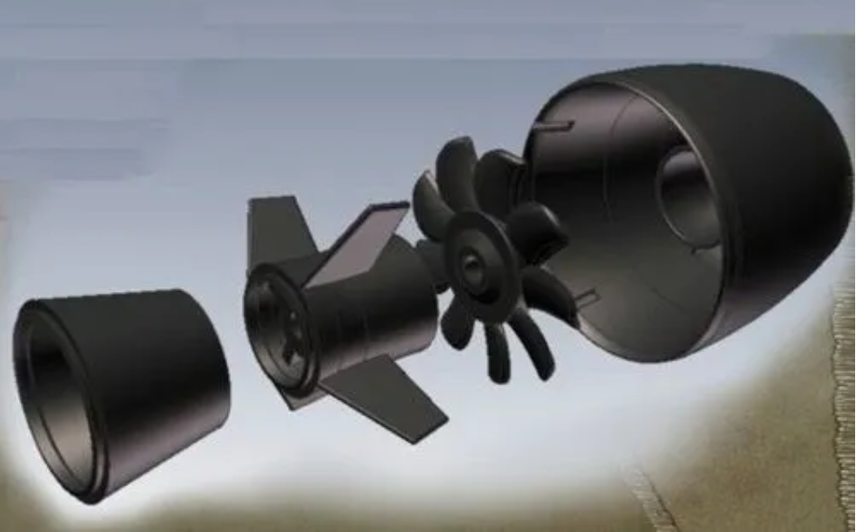 X尾舵的布局,推进装置被遮蔽了。几乎肯定将使用泵喷射发动机,而非斜背螺旋桨,能充分满足新一代核动力设计的性能极限。