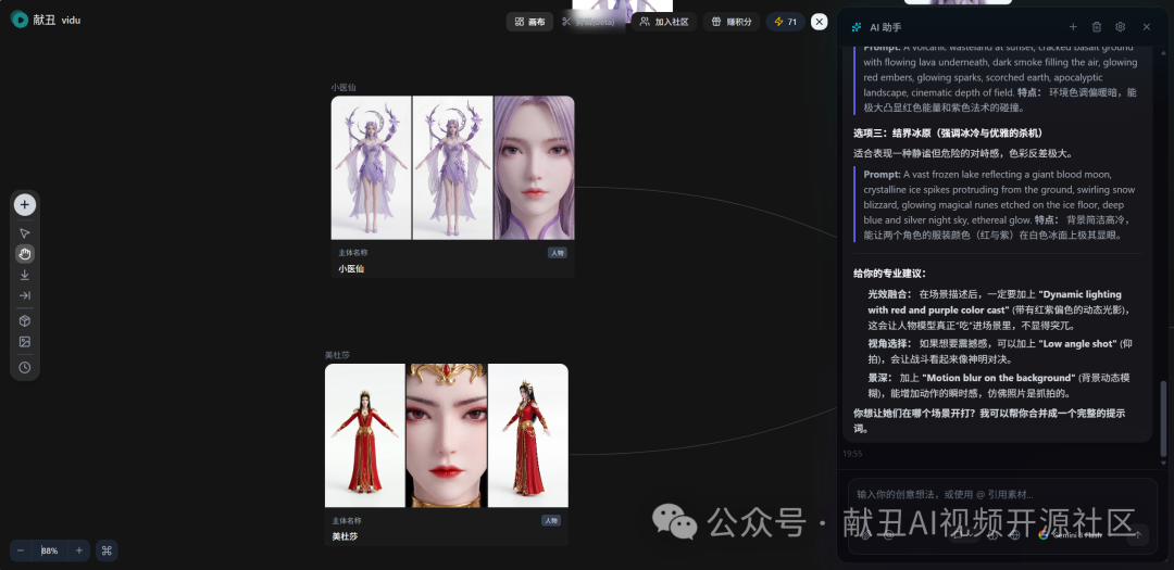 • 🎨 画布串联 — 把Vidu和其他模型拖到同一张画布上,搭建你的专属创作流水线