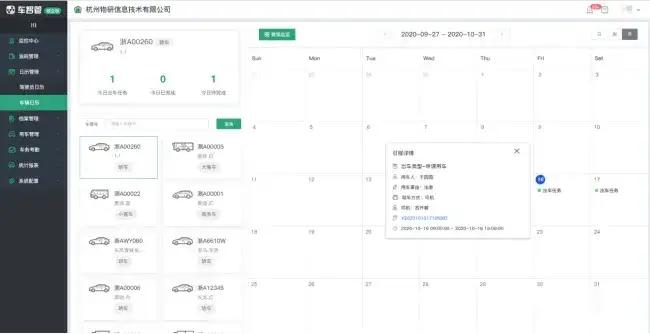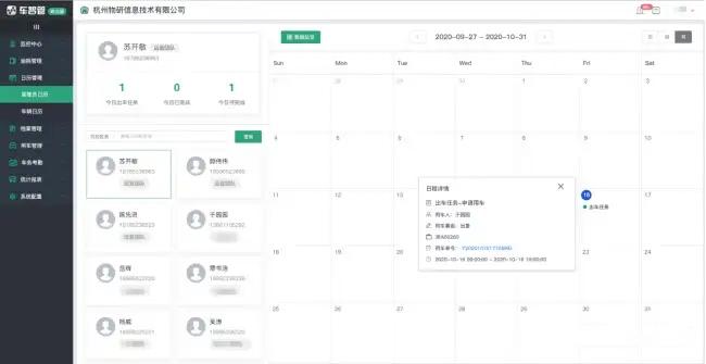 车辆日历中可以看到所有车辆的排班任务、出车时间和所有日程