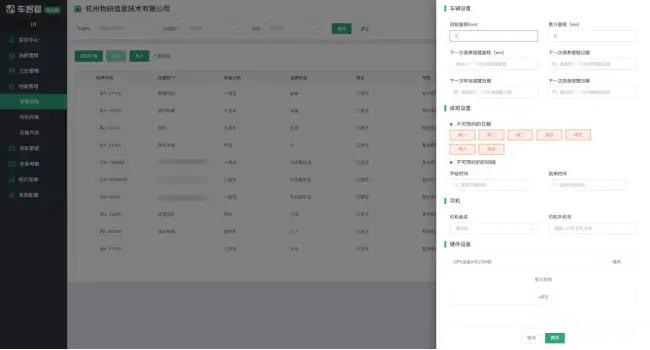在车智管上,您可在车辆列表中设置车辆的基本信息、排班设置、司机以及关联硬件。