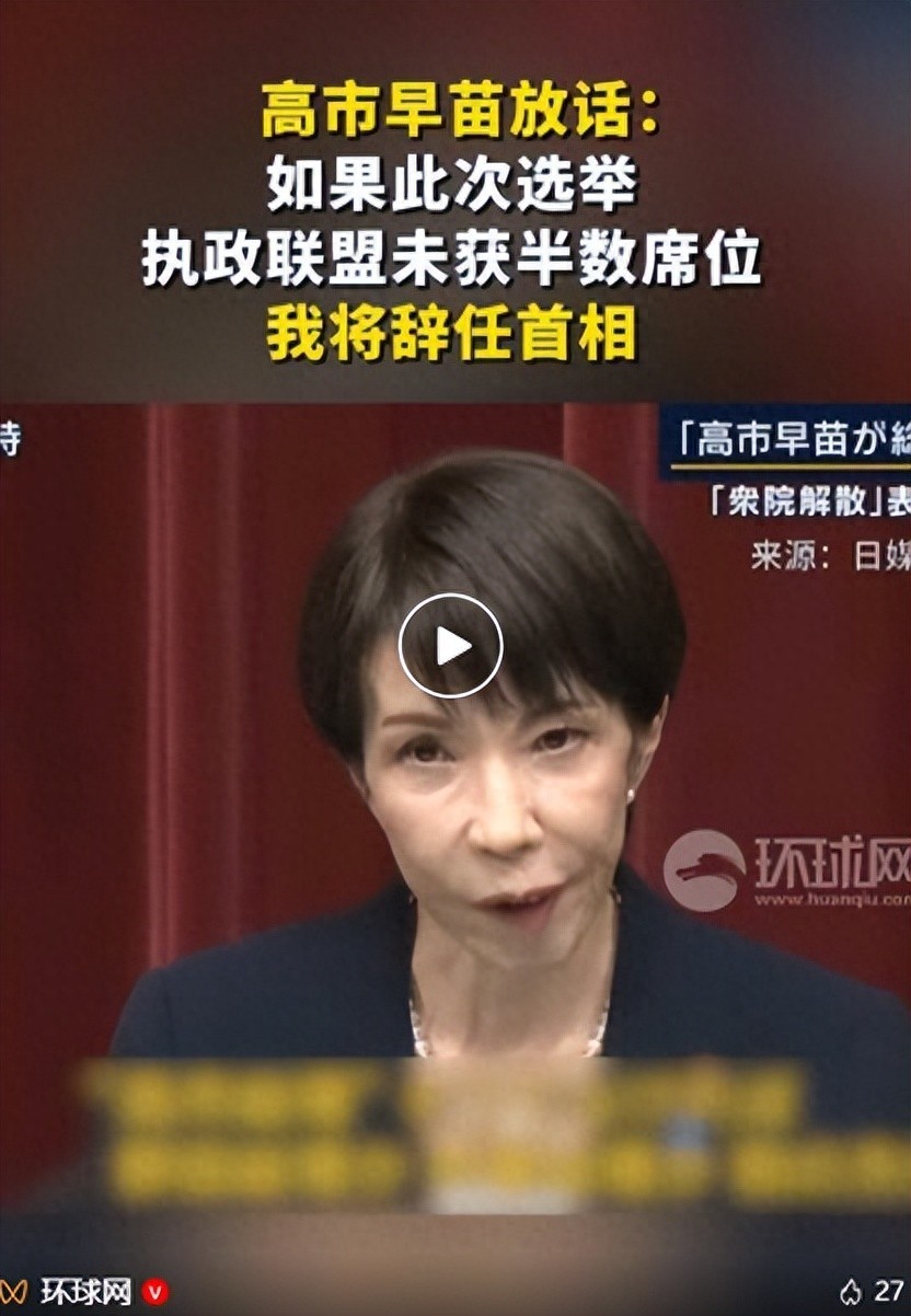 她当着所有人的面表示,如果这次选举,自民党和维新会的执政联盟没有获得半数席位,那她就将辞任首相,首相将是野田、齐藤或者是其他人。高市早苗这一招,看似是准备“急流勇退”,但是实际上也是“暗藏杀机”,其公然违背日本原有政治规律,悍然提前选举的行为看似乖张,其实也有深层次的政治考量。
