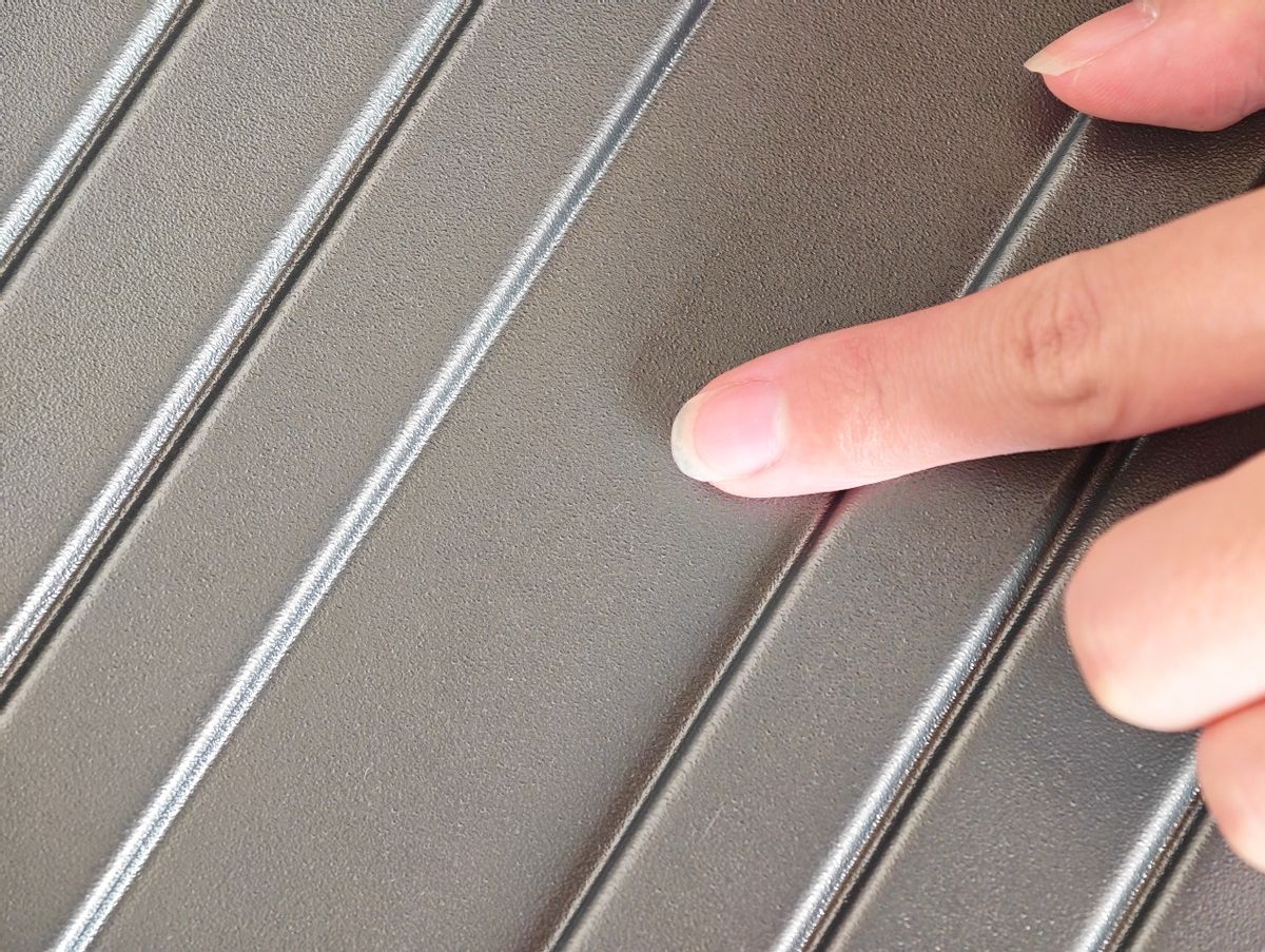 日常磨损也是一种考验,我们直接用钥匙尖在隐蔽处用力划擦(大家请不要轻易模仿),可以看到痕迹较浅,用布一擦就淡了许多。