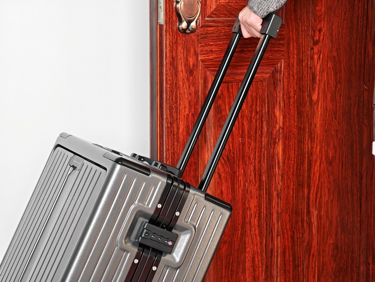 接着模拟日常磕碰:我们又拉着装满衣物的箱子,以正常步行速度去轻轻撞击门框边缘,模拟在机场或酒店走廊中难以避免的磕碰。合金包角忠诚地履行着护卫的职责,撞击后漆面光洁依旧,箱体结构纹丝不动。