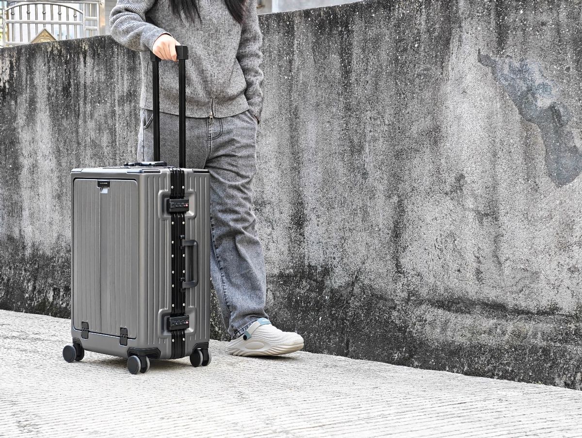 刚入手GaKior行李箱时,我发现它给人的第一印象并非时尚靓丽,而是一种扎实、可靠的工具感。箱体线条简洁利落,没有多余的装饰,表面材质摸上去细腻却明显比普通箱子厚实。拉杆握在手里沉稳不晃,轻轻一推,轮子滑行起来顺滑且安静,可以说这初步的接触,就已经让我感觉到它的与众不同了。