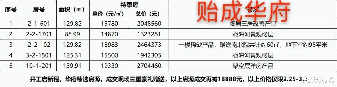 【塘沽】 贻成华府,小高层、洋房推出5套特惠房。