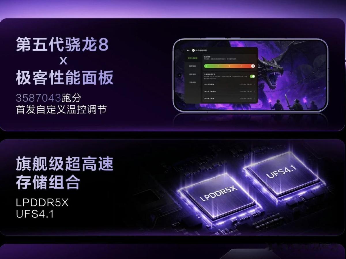 真我Neo8搭载了高通第五代骁龙8芯片,采用3nm全大核旗舰同款架构,不一样的是真我独家的极客性能面板在其他手机上是看不到的。
