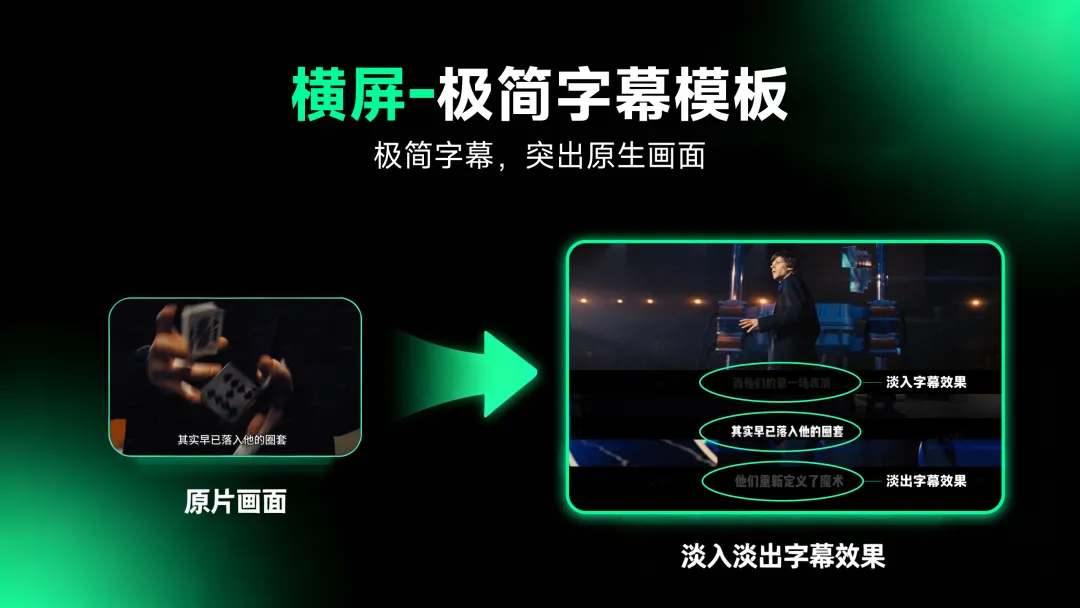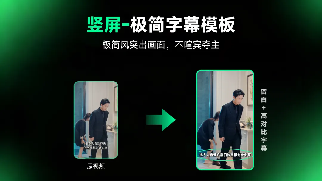 沉浸体验: 字幕采用淡入淡出效果,不抢戏,不遮挡主体,让观众沉浸在原片的情绪中