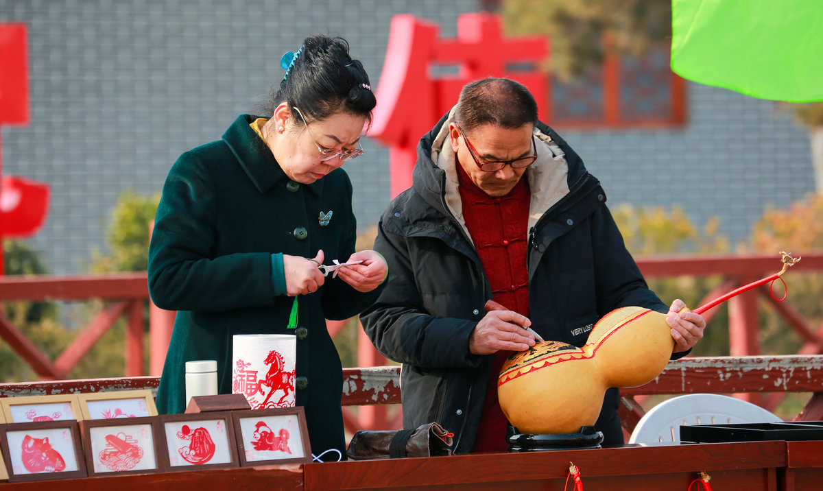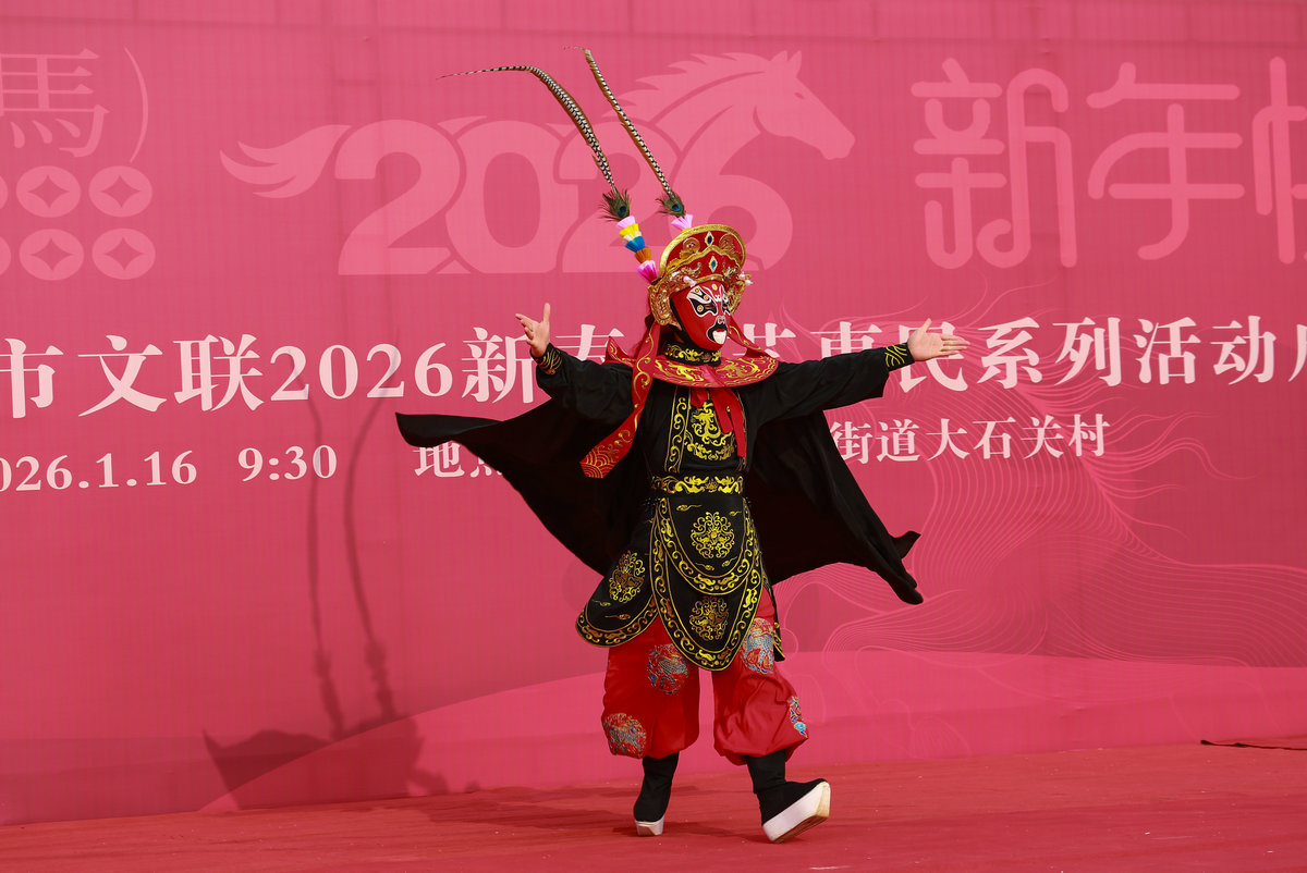 启动仪式结束后,现场开展了丰富多彩的文艺惠民活动。演艺区呈现了歌舞、戏剧、曲艺、杂技等精彩节目,赢得村民阵阵掌声;互动体验区则设置了书画送“福”、摄影留“福”、非遗展示等多个板块,书法家、美术家现场挥毫泼墨,为村民书写春联和“福”字;非遗传承人带来了剪纸、面塑、皮影等作品,与大家零距离交流。