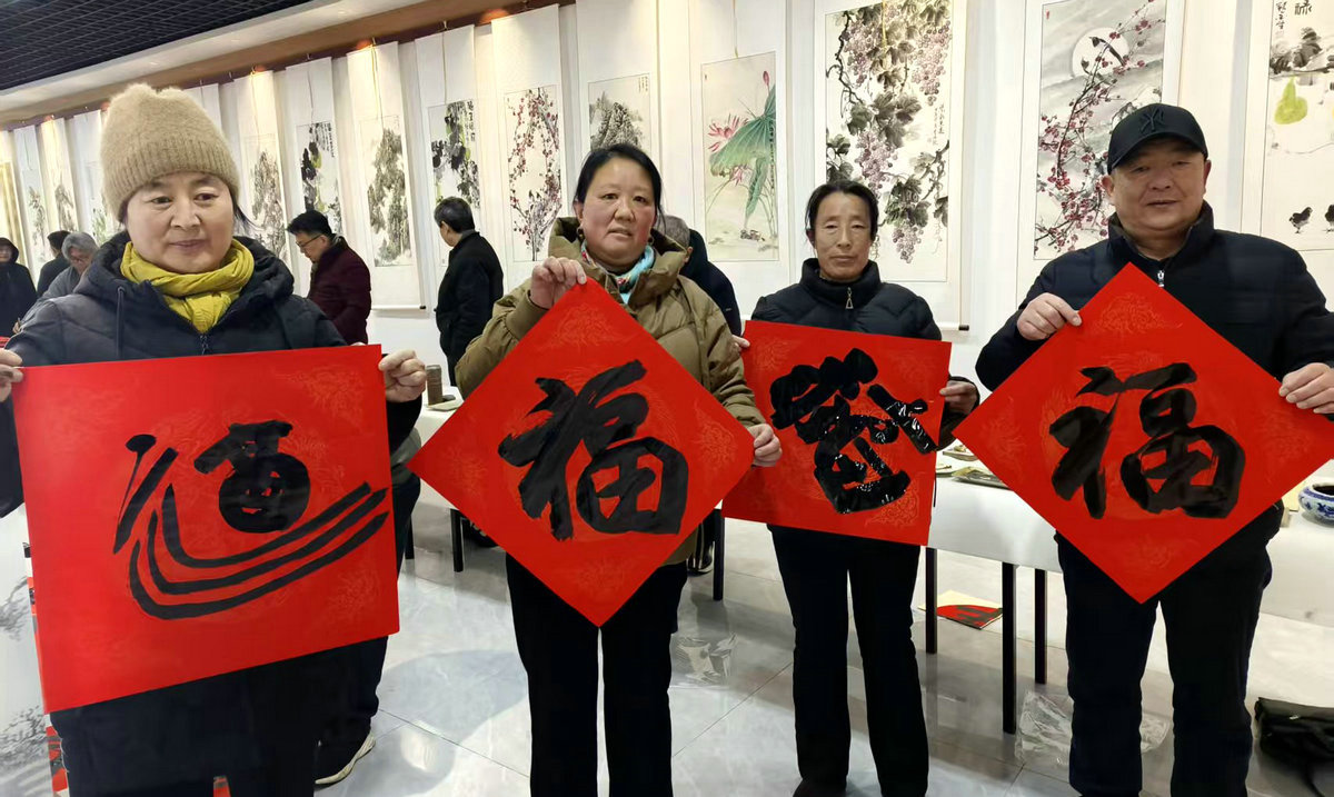 据了解,本次“五福临门过大年·新春文艺惠民”系列活动将持续至春节期间,活动通过书画送“福”、摄影拍“福”、戏曲唱“福”、非遗造“福”和作家祝“福”等多形式、多层次的文艺服务,把欢乐和文明送到基层,让广大群众度过一个充满文化气息的新春佳节。(摄影:牛静涛 王建英 王立山 许斌 范西进 许洪勇 张子秋)