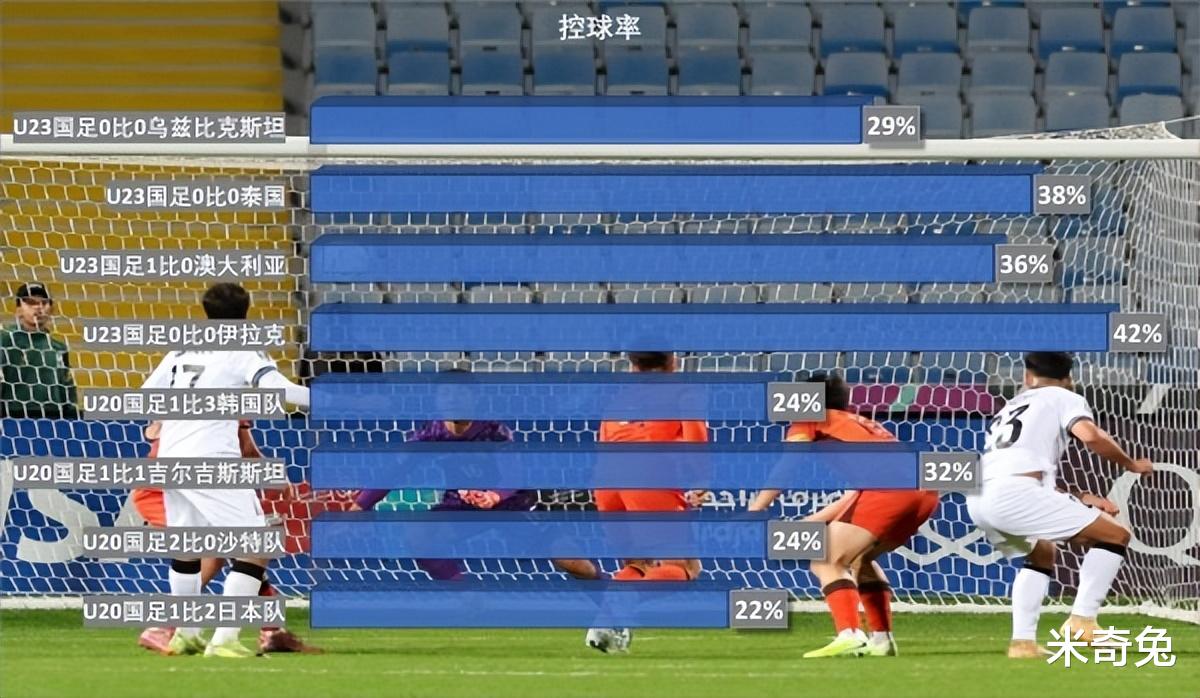 这个数据在来到U23带队时也没有多少变化,本届U23亚洲杯,球队的控球率也就在36%左右。之所以比亚青赛时好,是因为球队不少球员已经打上了中超,身体对抗上不吃亏。