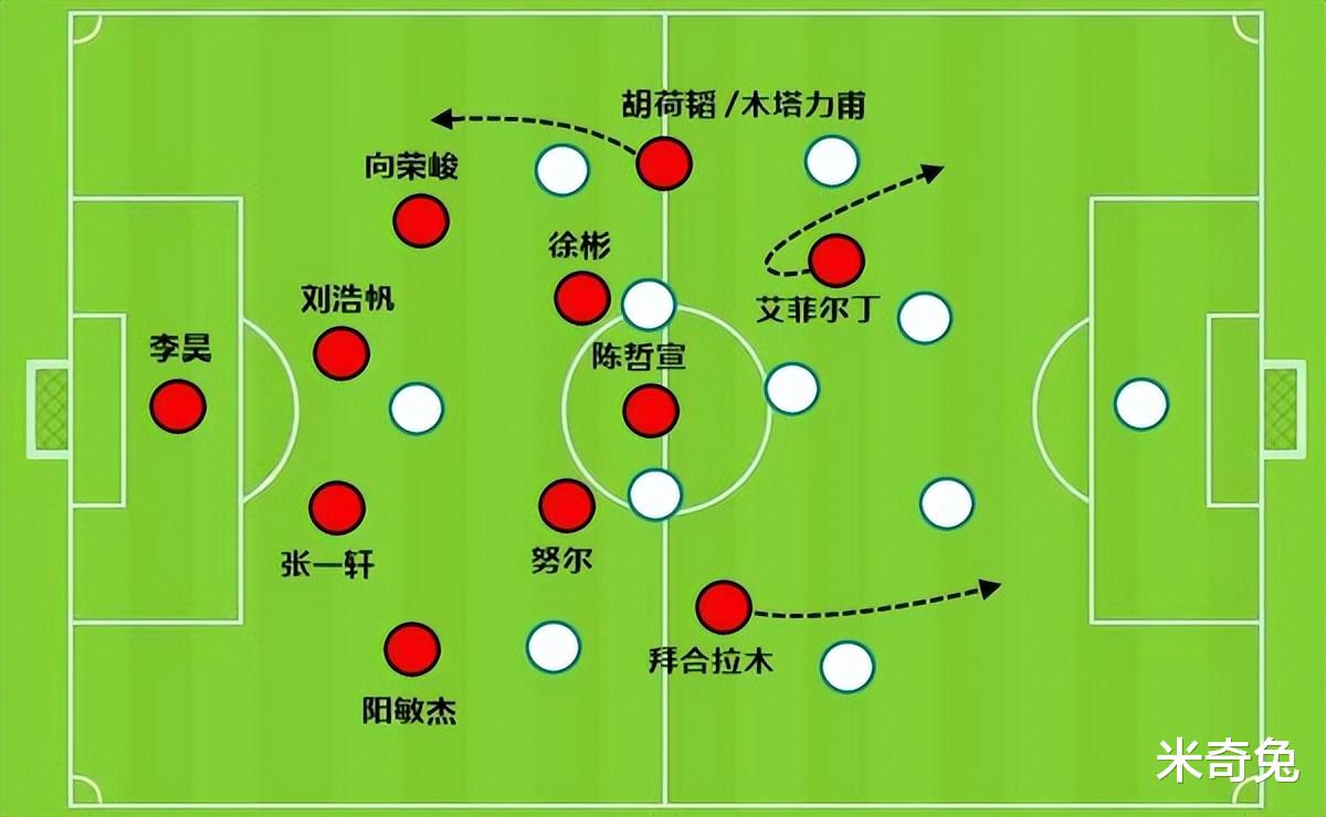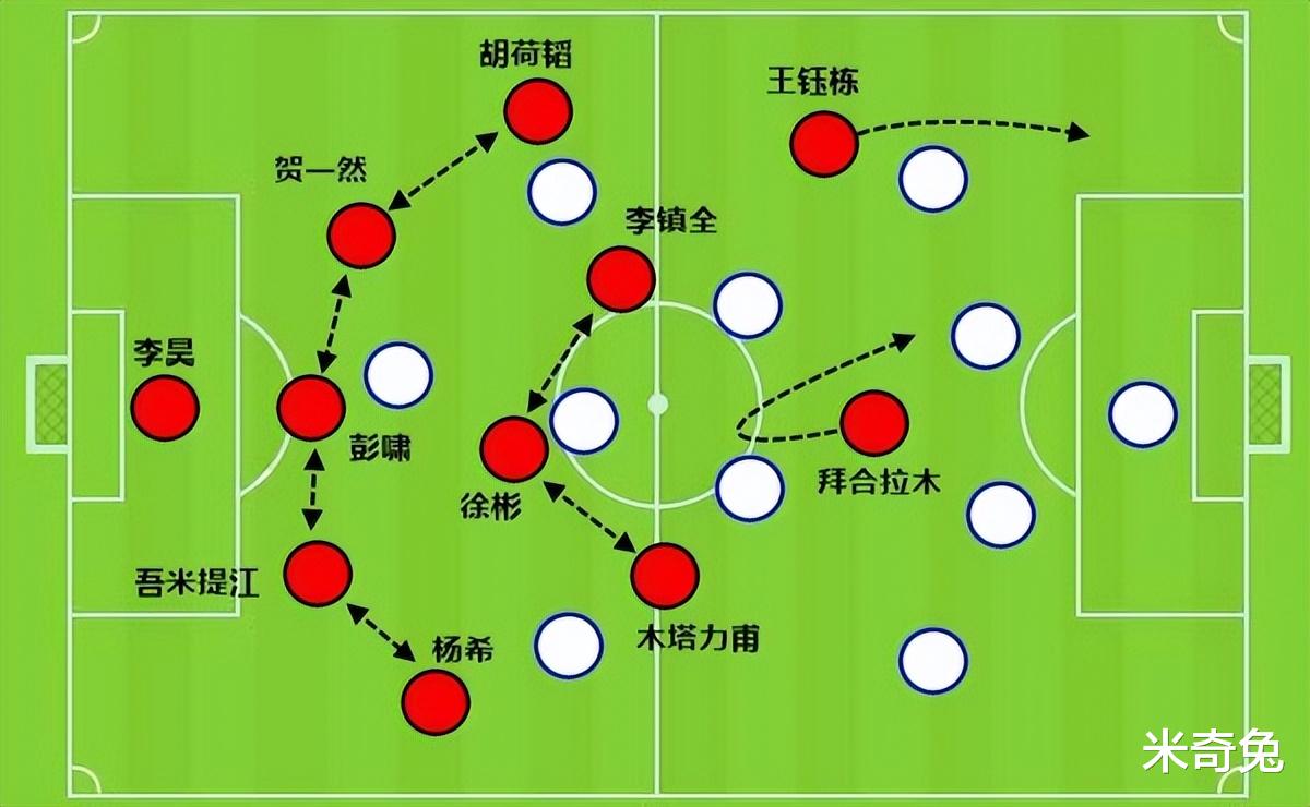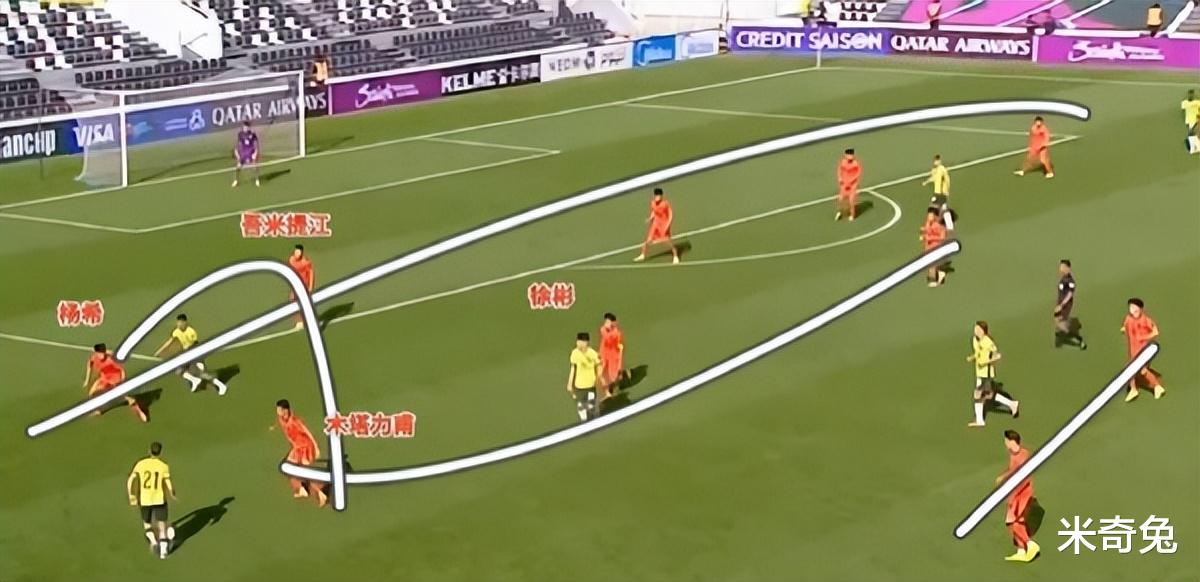 就像是这一次,中卫吾米提江拿球的同时,后腰徐彬去到右边路,原本右边翼卫的杨希前插到很靠前的位置。