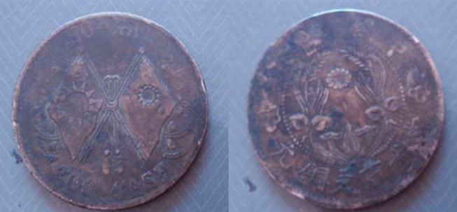不过大家别以为双旗币都值钱,张大爷捡的之所以能成“极品”,关键在这几个细节。首先是版别,当时各省造币厂工艺水平不一,模具设计也有差异,衍生出上千种版别。大爷那枚是湖南省造的五星版,旗帜上方的星点不是常见的十八星,而是五颗星,这种版别本就稀少,再加上是黄铜材质,存世量更是少得可怜,比普通红铜版少了九成以上。