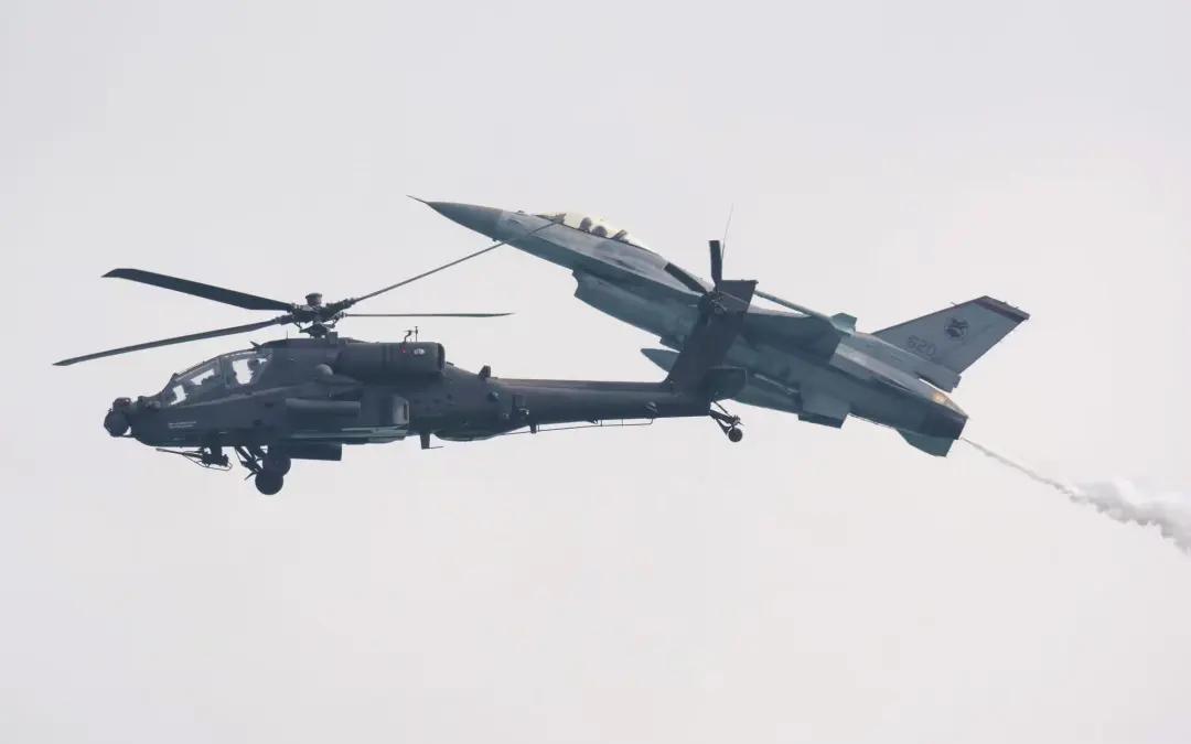 按上图计划,表演飞行首场是新加坡空军的 F-16C战斗机 + AH-64D 阿帕奇武装直升机联合表演。