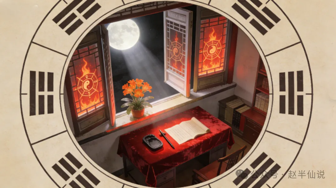 “您家宅子坐北朝南,南厢恰在九宫离位。离宫本就火旺,您又开了三扇南窗——窗为气口,三扇窗齐齐敞开,就像在离宫这处火旺之地,又架了三个灶口,一个劲往里添柴加火,火性炎上,早已成了燎原之势。”我在离宫位置重重画了个圈,炭灰簌簌落在纸上,“这还不够,您又铺红绒桌布、养橘红君子兰。红色属火,橘红更是火中带燥,是火上浇油。沈先生,您这南窗书房,哪里是读书明理的清净地,分明是个烈火烹油的炼丹炉。”