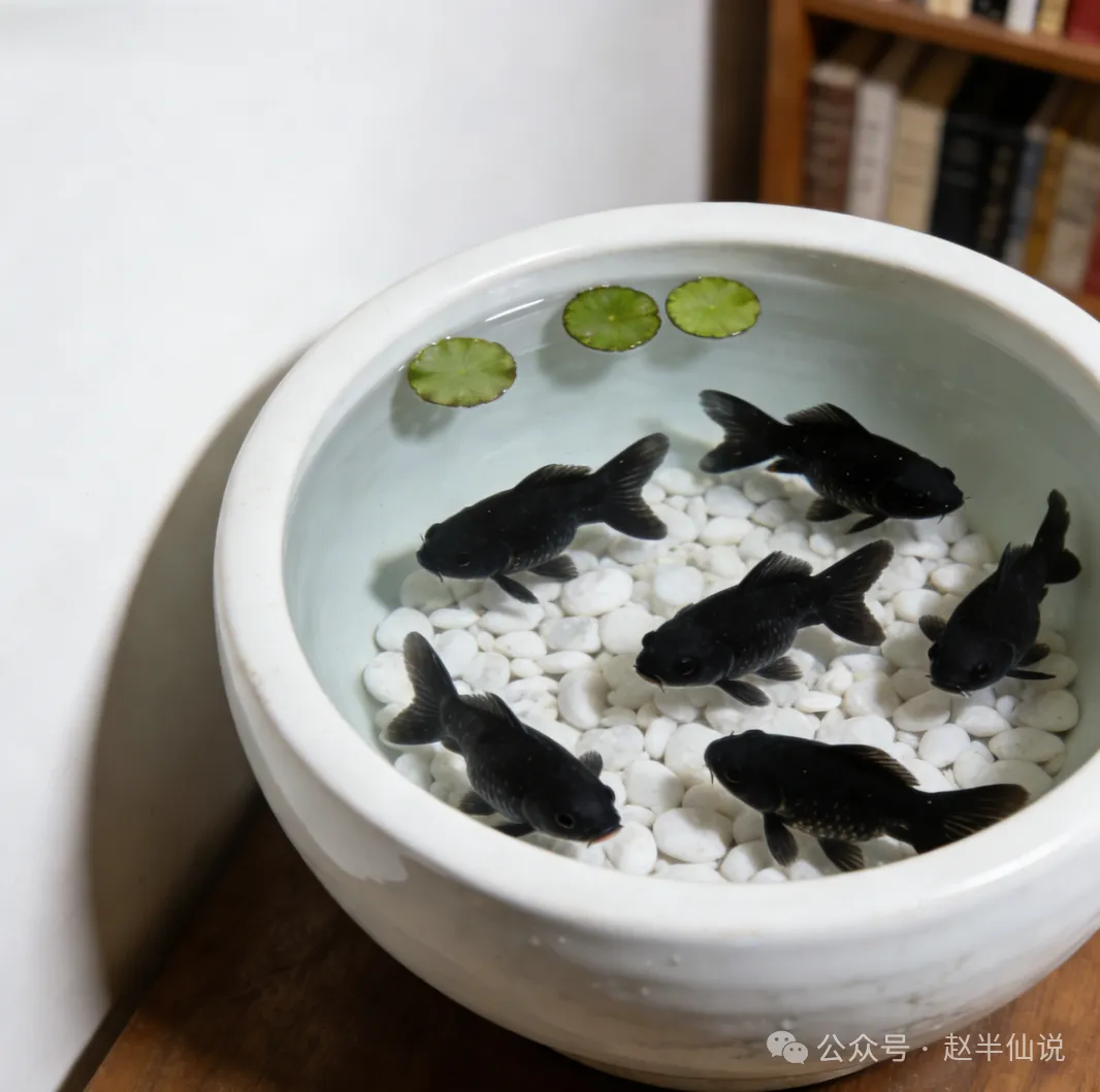 “封窗是减火气涌入,青砖属土,能泄火生金,调和气场。铜镜属金,金能泄火,镜面朝外,是把多余的燥火反射出去,不往宅内反弹,免得伤及家人。”我继续说,“第三,在书房西北角乾位,放一个白瓷大鱼缸,养六条黑色锦鲤。每日辰时换水,水要从西边井里打,静置半个时辰再换——自来水带着火气,用不得。”