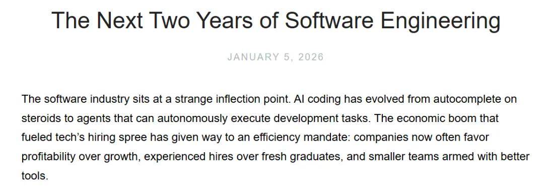 这五个问题都指向同一件事,软件工程正在从写代码的职业,转变为驾驭复杂系统与 AI 的职业。未来不是单一答案,而是多种路径并存,谁能适应变化,谁就能留下来。