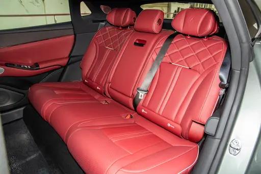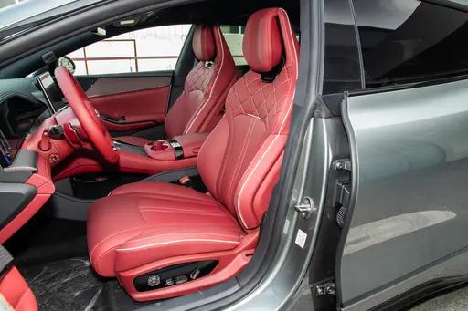 坐进车内,能明显感觉到这台车在豪华感与实用性之间做了平衡,内饰提供熔岩红、穿雾灰、踏雪白三种配色,不同风格可以适配不同用户的喜好。车内用到了原厂真碳纤维材质装饰,搭配红色 BOOST 拨片、金属怀挡和三幅式运动方向盘,运动氛围到位,但又不会显得浮夸,日常家用也不突兀。座椅采用一体式运动造型,支撑性不错,长时间开车不容易累,副驾配备零重力座椅,后排空间宽敞,支持多向调节,搭配舒适的靠背角度,长途乘坐也能保持放松,对于多口之家出行来说,前后排都能找到舒服的姿势。车内细节配置很贴近生活,比如智能冷暖冰箱、双 50W 无线快充、磁吸生态接口,出门带饮料、给手机和设备补能都很方便,2.1 平方米全景天幕采光充足,配合遮阳处理,夏天也不会觉得晒,油门联动氛围灯可以随驾驶状态轻微变化,增加一点驾驶乐趣。