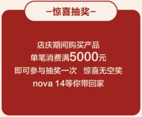 华为智能生活馆·西宁西宁中惠四周年店庆,六重好礼送不停,6月20日至22日期间,在门店单笔消费金额满5000元即可获得抽奖券,参与门店抽奖活动,华为手机(Nova14)、华为手表(Watch Fit3)等奖品等你来抽。