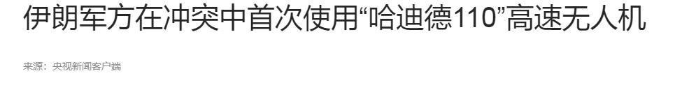 信源:央视新闻客户端2026.03.05伊朗军方在冲突中首次使用“哈迪德110”高速无人机