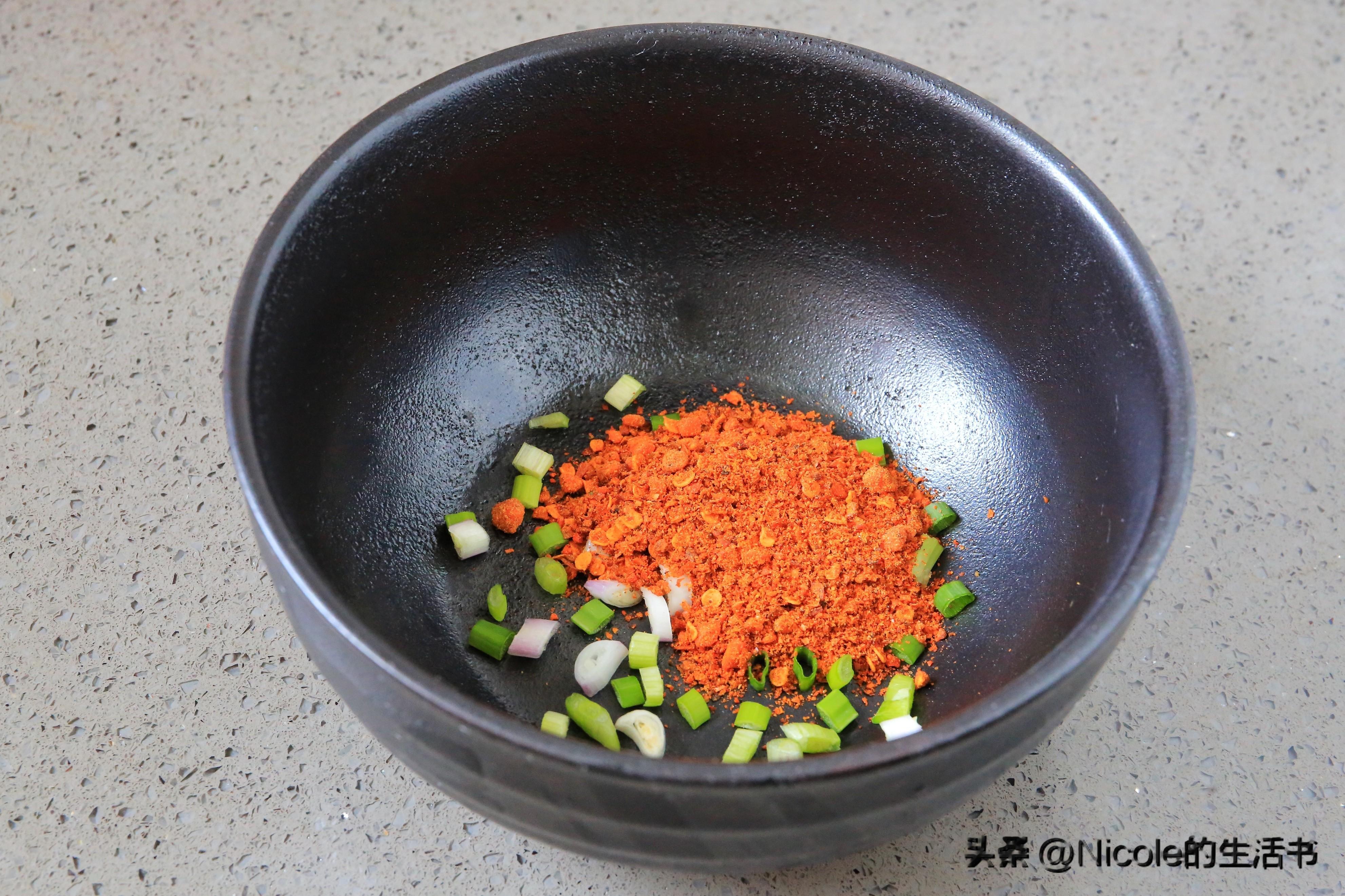 配料:小葱1根、辣椒粉2勺
