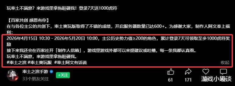 行军加速、老武将批量加强、抽卡增加保底、体力道具、各类任务玩法、“种瓜得瓜”……几乎刀刀都砍在关键处。难怪有玩家在评论区直接感慨:“终于有真正玩游戏的人来做策划了。”