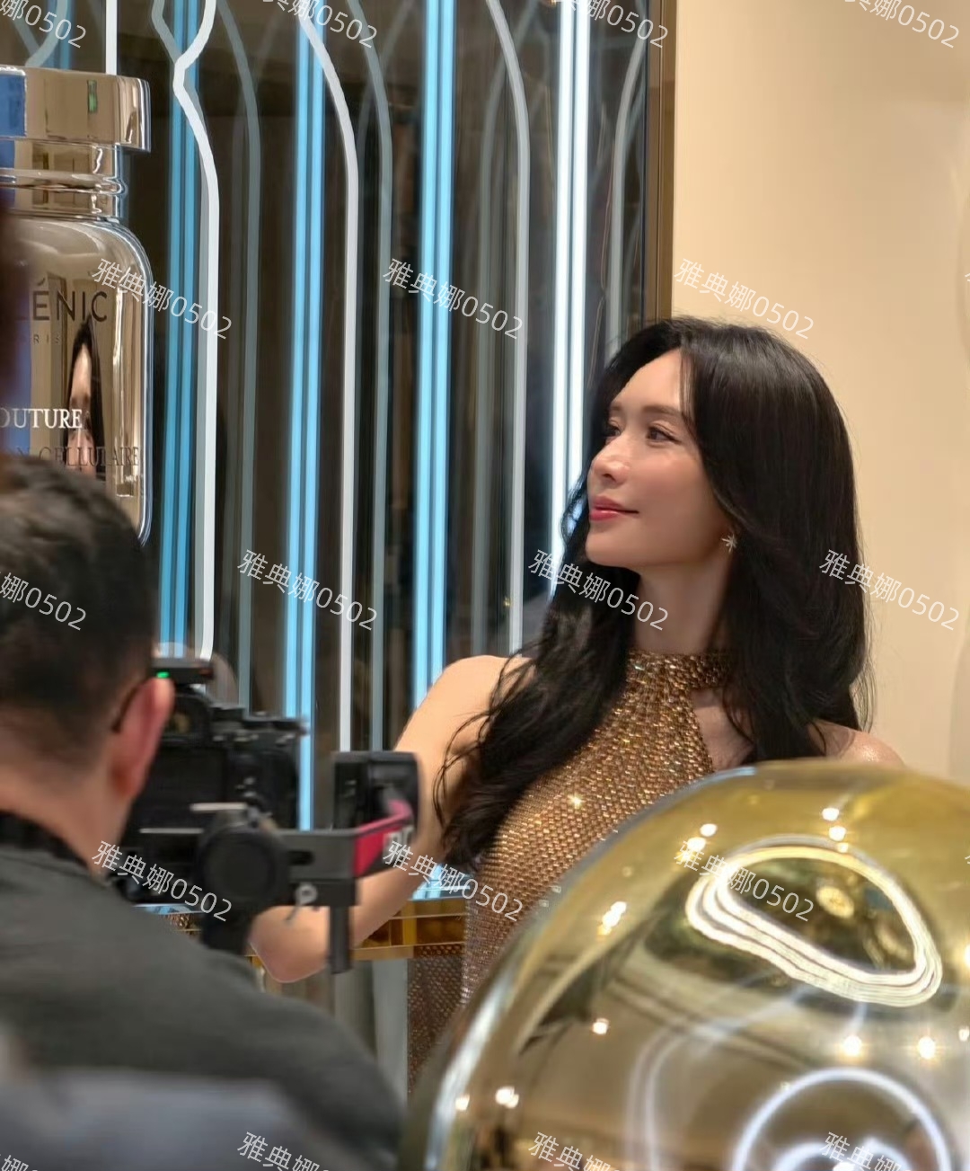 她今天的造型很女神,穿了一袭插肩鎏金礼服的志玲姐姐,像一条金光闪闪波光粼粼的美人鱼,不仅把她的身段衬得十分窈窕曼妙,气质也特别高贵优雅。