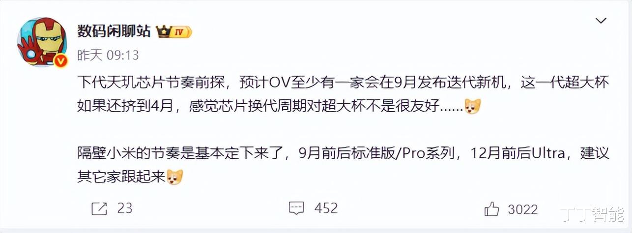 博主同时提及,当前旗舰机尤其是超大杯机型的发布节奏存在优化空间。若传统超大杯机型仍集中在次年4月发布,将面临芯片换代周期的尴尬——此时距离上一代旗舰芯片发布已近一年,在竞品纷纷搭载新一代芯片的情况下,产品竞争力可能受到削弱。随着天玑9600与OV新机的节奏前移,这种“芯片与机型节奏错位”的问题或将被逐步破解,消费者也能更快体验到搭载最新芯片的旗舰产品。
